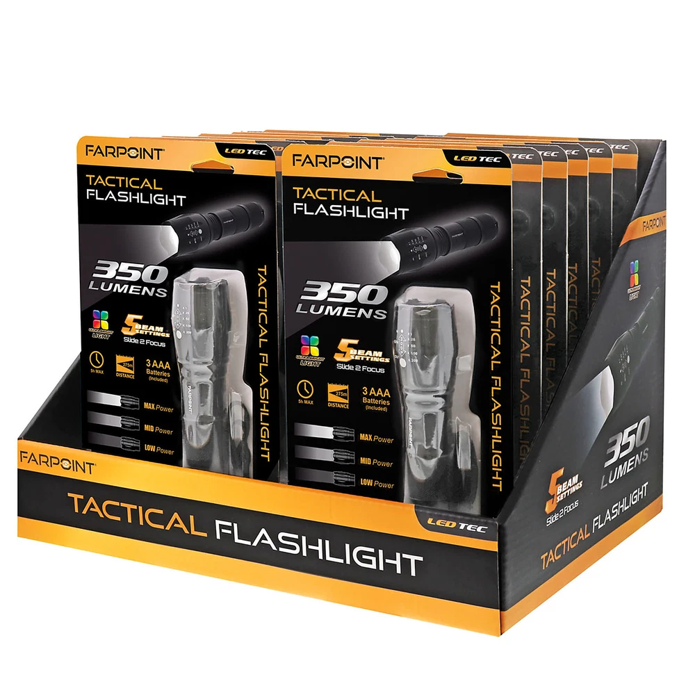 350 Lumen FLashlight FarPoint, Tactical Flashlight 350 Lumen (Uses 3AAA Included) Model# FLX1133012 Northern Tool Item# 6092807 Item Weight: 0.4000 lb(s) Manufacturer: MPN: Warranty: . Product Summary: 350 Lumen FLashlight Payment Instructions You can pay us securely through eBay. All orders will contain an invoice/receipt. IMPORTANT: We will not honor requests to remove invoices or receipts from packages. No exceptions ON U.S. PURCHASES, Northern currently collects sales tax on purchases shipped to all states except: Alaska, Delaware, Montana, New Hampshire, Oregon Shipping Information This product will be shipped by Parcel. Parcel Shipping: Ground shipped items must be sent to a physical address and cannot be sent to a PO box. If a PO box address is submitted without a physical address, it may delay your order. We cannot ship to APO/FPO boxes. Please note that we do not ship items on weekends or holidays. More information on shipping and handling times can be found on our Store Policies Page . Customer Care We want you to be satisfied with your purchase; please notify us by email if you have any concerns. Before you send an email message, please check our Help Section . We may already have an answer to your question! We are available to answer your email questions Monday through Friday from 8am - 3pm CST, excluding holidays. If your email is sent on a weekend, holiday or after business hours, we will respond to you on the following business day. Returns may be accepted on most items within 30 days of receipt of the item. All returns require authorization from us. Some returns are charged a 15% restocking fee. Please click the Shipping and Payments tab on this item for specific return information and full details. About Our Products Product Warranty: Warranty information and contact details can be found on our Store Policies Page. We are working hard to ensure that the information provided on the eBay product advertisements is accurate and up-to-date. We reserve the right to correct ad errors and/or omissions. Pricing and availability is subject to change without notice. Yes