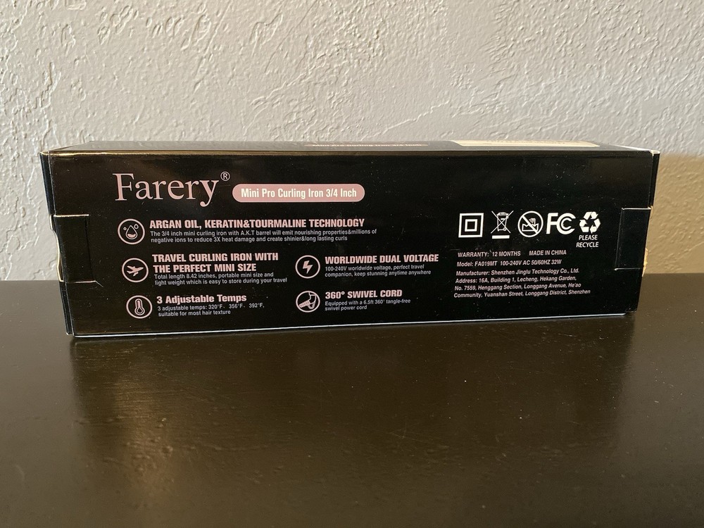 The Farery Mini Pro Curling Iron is a compact 3/4" travel size curling iron designed for on-the-go styling. With an electric power source and tourmaline heating plate, it provides efficient and salon-quality curls. The iron features adjustable heat settings, an indicator light, and a cool tip for safe use. It is suitable for all hair types and has a sleek black color. The dual voltage and world voltage capabilities make it convenient for use in various countries, while the swivel cord allows for comfortable styling. Made in China, this curling iron is a versatile and reliable styling tool for achieving beautiful curls wherever you are.