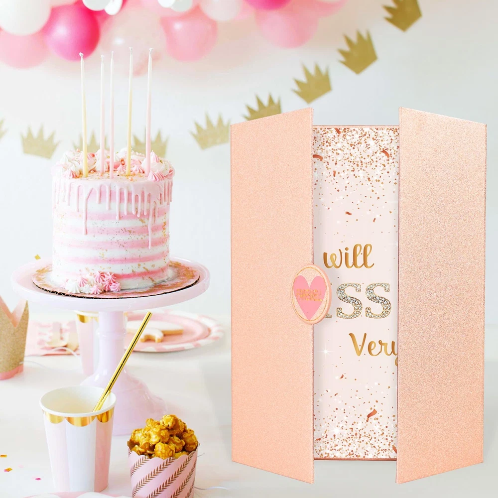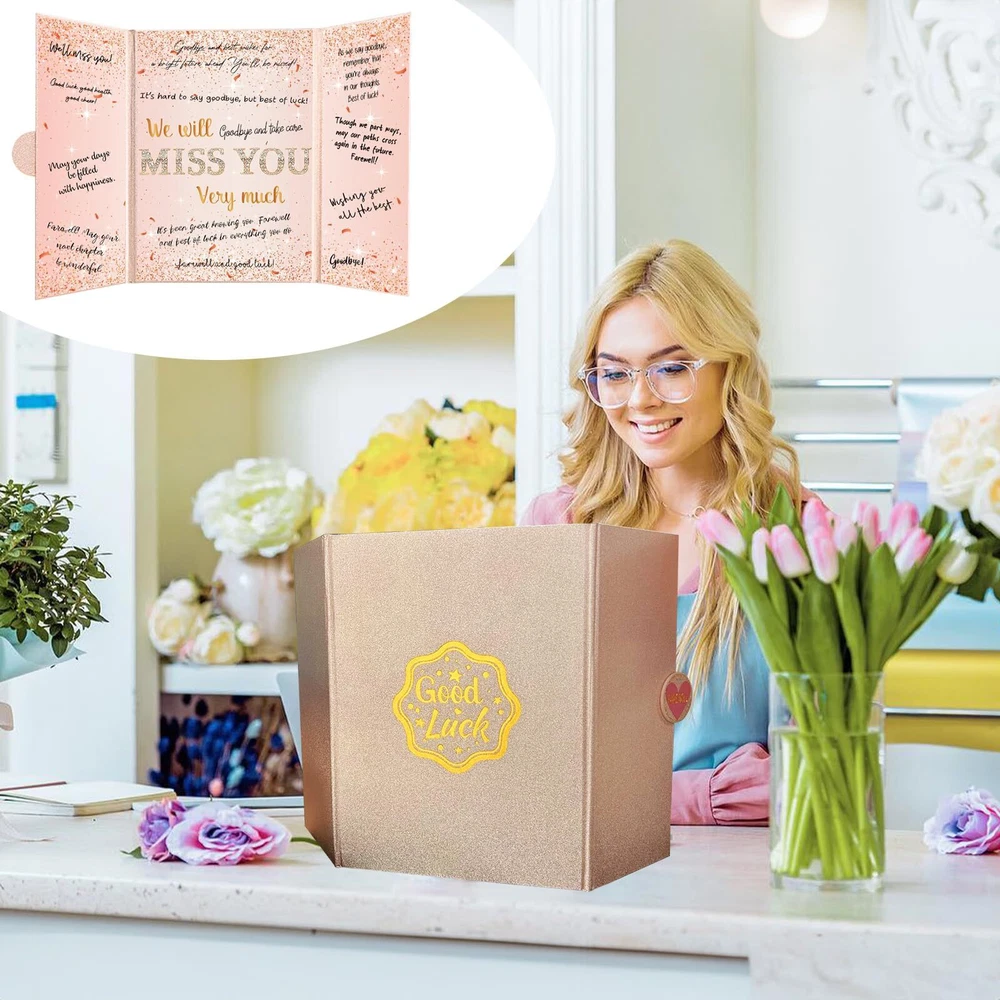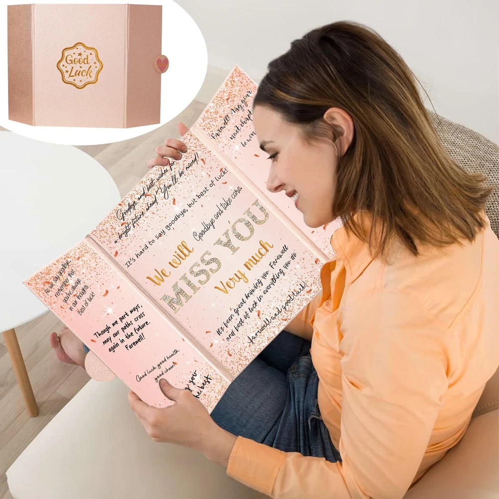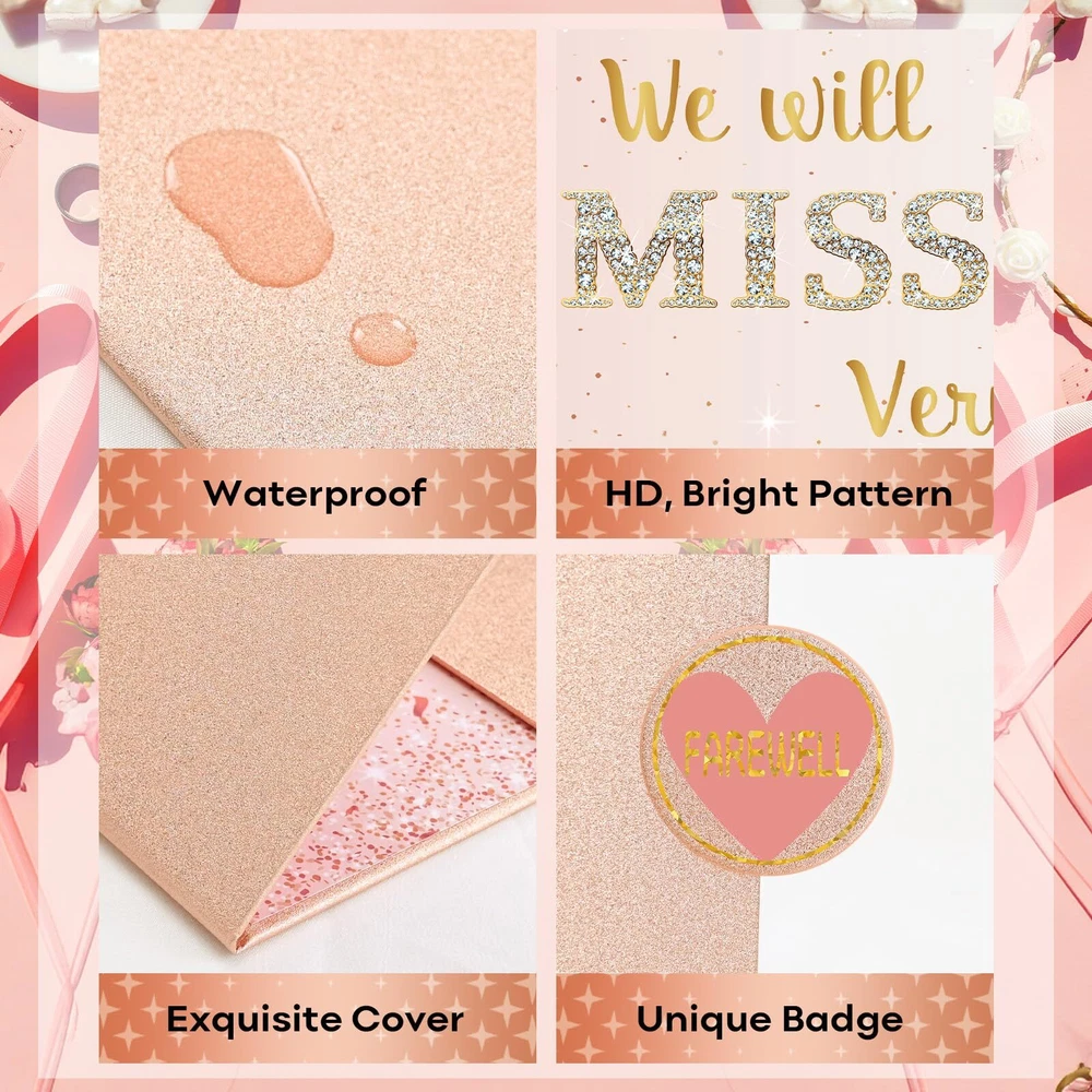 Farewell Gifts for Coworkers Friends Rose Gold Farewell Guest Book to Sign in We Will Miss You Signature Guestbook Alternative Women Girls Retirement Going Away Card Board Keepsake Party Decorations Rose Gold Farewell Guest Book – A Thoughtful Gift for Coworkers & Friends Elegant Design This stunning farewell guest book features a sparkling rose gold cover with a beautiful heart-shaped emblem, adding a touch of elegance and class. The glittery design and "We Will Miss You Very Much" message make it perfect for farewell parties, creating lasting memories with thoughtful signatures. Perfect for Any Farewell Whether it's for a coworker, friend, or loved one, this guest book is ideal for retirement parties, going-away celebrations, or any event where heartfelt messages and well wishes are exchanged. Package Includes One high-quality rose gold farewell guest book (pen not included). The unfolded dimensions are approximately 18 x 12 inches / 46 x 31cm, and folded size is 12 x 9 inches / 31 x 23cm, making it easy to display or store. Durable and Long-Lasting Crafted to last, this guest book is perfect for writing messages that can be cherished for years to come. It’s a durable keepsake that won't fade over time, perfect for reliving those special moments. Versatile Decoration Piece Use it as a meaningful décor item at farewell parties or even in the office. It's a wonderful conversation piece that adds a sentimental touch to any event, and will serve as a lovely reminder of the cherished memories created. Package Included: This elegant rose gold "We Will Miss You" farewell guest book (pen not included) comes ready to use, with no assembly required. Simply pass it around at your party for guests to fill with their heartfelt wishes. It's ideal for collecting warm messages and signatures at farewell or retirement parties. Suitable for displaying or storing after the event, capturing memories in a beautiful way. Unique Design: The farewell guest book showcases a beautiful rose gold cover with sparkling gold accents, featuring the heartfelt message "We Will Miss You." A charming heart-shaped badge enhances the design, and the magnetic closure keeps everything secure. Inside, the three-section layout provides plenty of space for guests to write their farewell messages and well-wishes, making it a beautiful and memorable keepsake for any farewell or retirement celebration. Ideal Sized: When folded, this guest book measures 12 x 9 inches (31 x 23 cm), making it easy to handle and display. Once unfolded, it expands to 18 x 12 inches (46 x 31 cm), offering plenty of space for guests to leave their heartfelt messages and signatures. This thoughtful design ensures ample room for creating lasting memories while maintaining a compact size for easy storage. Premium Materials: The farewell guest book’s cover is made with pearlescent frosted paper. Made from premium quality, thick cardboard paper, this guest book is designed for long-term use and won’t fade over time. The sturdy cover and inner pages ensure that your keepsake remains in pristine condition, preserving precious memories for years to come. Wide Application: This guest book is suited for farewell parties, retirement events, or going-away gatherings. It’s not only a signing book but also a meaningful gift for someone departing. Whether for a coworker, friend, or family member, this guest book helps capture the heartfelt messages and memories from your celebration. Suitable for friends, family, coworkers and classmates to leave their best wishes on your special day. Shipping from the USA All of our products are shipped from the USA, ensuring quick delivery to your destination. Payment We offer the following payment methods: PayPal, credit card, bank transfer, and eBay's secure payment system. Free Shipping & Free Returns Shipping within the USA is FREE. Additionally, any return is absolutely free for you. Risk-Free Purchase You have the option to return an item within 30 days without any justification. We cover the return shipping costs! Fast Shipping We ship immediately upon receipt of payment. Generally, the package is delivered within 2-3 days in the USA. If it takes longer, we will contact you. Quality and Costs Made in Europe, USA, China No customs fees or additional charges Total satisfaction guarantee Invoice with declared VAT available upon request in .pdf format Feedback Your feedback is very important to us. After you pay for your purchase, you will automatically receive positive feedback from us.