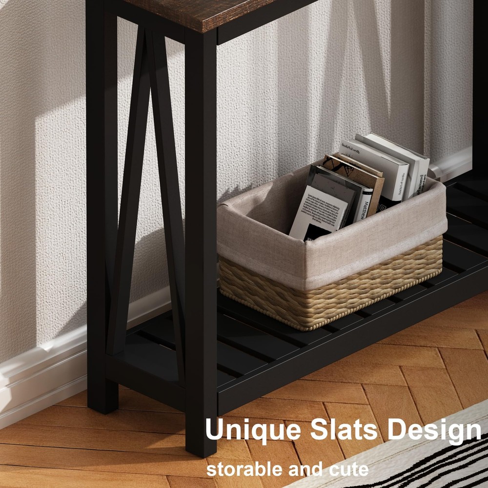This console table is a perfect blend of farmhouse charm and modern functionality! The sturdy P2 MDF construction ensures long-lasting durability, while the melamine veneer top resists water, heat, and dust—easy to clean with just a damp cloth. Love the decorative slatted bottom shelf for extra storage and style. It’s sleek, spacious, and adds a cozy yet elegant touch to any entryway, living room, or hallway. Highly recommend for anyone looking to upgrade their home decor with a practical and beautiful piece!