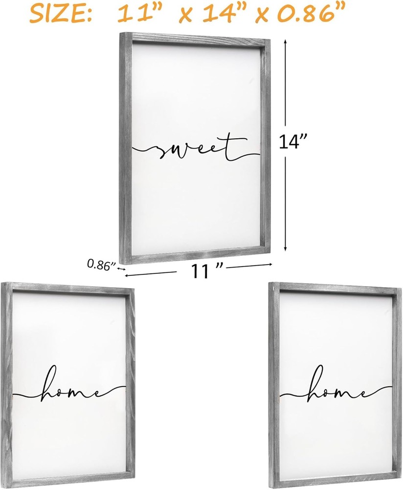 Set of 3 Framed Farmhouse Home Sweet Home Sign above Bed Wall Decor for Bedroom RUSTIC CHARM FOR HOME: Home Sweet Home signs fits any master bedroom or guest room decor in any farmhouse and early American style. Adds a rustic and charming touch to any room in your home, with a timeless design that complements any decor style. Place it in your hallway, kitchen, bathroom, bedroom, near the TV, or outdoors to add a warm tone to your house. PERFECT HOME DECOR: “Home Sweet Home” each part of the phrase is separated, as it gives a unique look. Elaborately designed, The farmhouse wooden sign can not only make the blank wall no longer monotonous, but also create a harmonious and warm family atmosphere with the inspirational quote that fits the family theme. STURDY SOLID WOOD:The frame is made of natural pine wood, which is durable and not easy to crack or rot, enough for long-term use. The mid-board is made of density fiberboard, which is moisture-proof, and UV-proof, The printing on it is clear and not easy to fade. EASY TO HANG: All of our farmhouse home wall signs come with mounting hardware. Screws are included in the package and saw-tooth hangers is installed on the back of each farmhouse wooden sign for easy hanging without worrying about falling off. Or if you don’t want to hang it, you can lean it against the wall. BEST GIFT FOR LOVED ONES: The home sweet home signs are perfect gift for parents, friends, lovers, teachers, Birthdays, Christmas, Valentine’s Day, Mother’s Day, Father’s Day, Thanksgiving, New Year etc. It will make a special and sweet gift for your family, friends or neighbors! Shipping We offer FREE shipping on all orders! We ship within Three business days of payment, usually sooner. We use a selection of shipping services such as UPS, FedEx, USPS etc. We only ship to the lower 48 states, no APO/FPO addresses or PO Boxes allowed. Local pickups and combined shipping options are not provided at this time. Return You can return a product for up to 30 days from the date you purchased it. Any product you return must be in the same condition you received it and in the original packaging. Please keep the receipt. Customer satisfaction is very important to us. If you have any problem with your order, please contact us and we will do our best to make you satisfied. Contact Us If you have any queries, please contact us via ebay. We usually respond within 24 hours on weekdays. Please visit our eBay store to check out other items for sale! Thank you for shopping at our store.