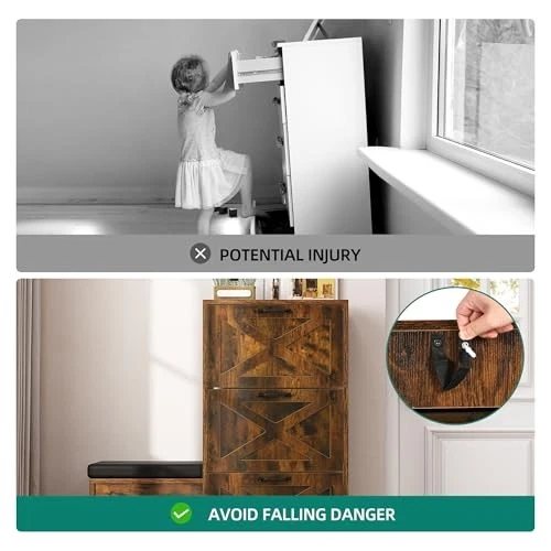 Return Policy Fast Delivery Trusted seller Farmhouse Shoe Cabinet with 3 Flip Drawers for Entryway, Shoe Storage Cabinet with Shoe Bench, Narrow Slim Shoe Rack Organizer for Entrance, Living Room, Hallway, Rustic Brown Product Description Engineered Wood Tidy Up Your Entryway: Step into a tidy space every time you come home. Our shoe cabinet blends a comfortable bench with smart storage, letting you sit on the plush cushion, kick off your shoes, and slide into relaxation as you organize your footwear Ample Hidden Storage: Keep your growing shoe collection neatly organized in 3 flip drawers with hidden compartments. Adjustable shelves inside let you customize the space, ensuring everything from sneakers to boots has their spot Adaptable Style: This entryway shoe cabinet was designed in warm white, rustic brown, and vintage coffee, this shoe cabinet complements any decor. Whether your style is modern, farmhouse, or vintage, it seamlessly fits into your home's aesthetic Sturdy & Safe Construction: Crafted from sturdy engineered wood with square steel legs, our shoe organizer offers stability wver it stands. The included non-tipping kit ensures extra security, giving you peace of mind Effortless Assembly: Assembling this hidden shoe cabinet a breeze with clear instructions and labeled parts. Plus, with a dedicated team ready to assist with any questions, you’re sure to enjoy a smooth shopping experience from start to finish Shipping Returns Payment Shipping Shipping is FREE to all addresses other than APO/PO boxes in the lower 48 states. All our stock ships from US-based warehouses. Shipped via USPS or UPS (depending on location and package weight) Unless stated otherwise, all orders will ship within 24-72 hours of your payment being processed. Check our feedback to see the great reviews of FAST shipping we offer. Returns Seller does not accept returns Payment We currently accept payment via eBay managed payments only. Once payment is cleared, we will dispatch your shipment within 1-3 business days. Please refer to the "Shipping" tab for more information regarding shipping speed to your destination.