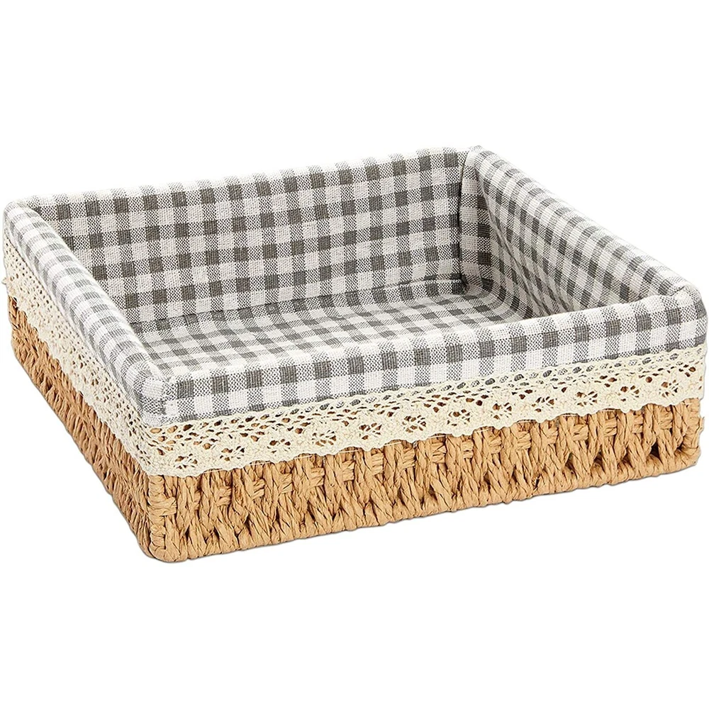 Our 3 baskets for organizing are perfect for those who want functionality and style in their home storage solutions. Each basket has a removable liner, providing versatile storage for various household items, from towels and clothing to beauty products and spices. These assorted baskets for organizing can be used across multiple house rooms, including the bathroom, laundry room, kitchen, living room, and bedroom, for decorative and practical purposes. Our wicker baskets with lining are made of high-quality woven paper material, ensuring they are durable and stylish. The neutral color of the baskets makes them versatile enough to match any rustic-style or modern home decorations. They are also easy to clean and maintain, allowing you to use them for years. These baskets make great gifts for Christmas, birthdays, or housewarming parties. With 3 different sizes, you can use them separately or stack them for even more storage space. They are perfect for those who want to declutter their home while adding a touch of elegance to their decor. Basket with Liner for Organizing: Use this set of rustic-style woven wicker storage baskets for organizing home essentials like magazines, clothes, toys, craft and school supplies, and hand towels Nesting: These lined baskets stack inside of each other for convenient storage when not in use; ideal for your drawer, shelf, desk, laundry room, bathroom, nursery, or kitchen Strong and Lightweight: This set of woven wicker storage baskets for shelves is made of woven paper material, has a sturdy iron wire frame, and a removable cotton lining that is easy to clean Assorted Sizes: The wicker baskets for organizing come in 3 sizes: the large basket measures 10x3 inches, the medium basket measures 8x3 inches, and the small basket measures 7x3 inches What You'll Get: You will receive 3 wicker organizing baskets; each banana leaf basket is an excellent gift for a friend or loved one at a housewarming party, birthday party, or baby shower
