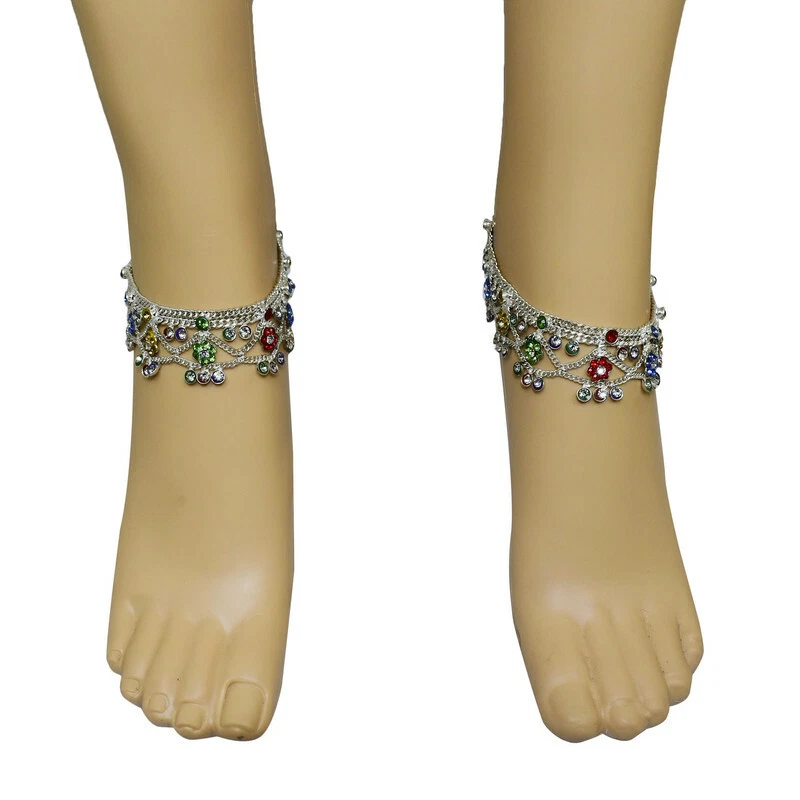 Item Description Women's Anklets Payal Indian Ankle Bracelets Chain Pair Foot Jewellery Sale For:- 1 Pair Size:- Length:-26cm x Width:-2.5cm (Approx) Material:- Metal Color:- Multicolor Closure:- Hook Type:- Anklets Main Stone:- Artificial Stones & Beads About This Item New Traditional Style Anklet For Women And Girls. Ethnic Significance:- Brides Wear It To Draw Attention To And Decorate Their Feet Bells Or Chimes Make A Soft Sound When The Bride Walks Traditionally Payals Are Worn In Both Feet. Style Tip:- Perfect For Spring And Summer Wear.Compliments Most Outfits.Casual Chic Everyday Wear. Perfect Traditional Anklet Contemporary Look,Ideal For Any Ethnic Outfits Like Saree,Lehenga,Gowns,Bridal Wear,Party, Festival,Any Special Occasion, Dance Or As Fashion Novelty Costume Accessories. Ideal For:- Christmas,Thanks Giving,New Year,Valentine,Birthday,Anniversary Or Any Occasion,Gift For Someone You Love Jewellery Care:- Can Be Used In Water But Dry Completely Before Storing. Note:-Buyers Will Be Responsible For Pay Their Country'S Custom Duties Charge, Import Charges And Other Charges (If Applicable) .