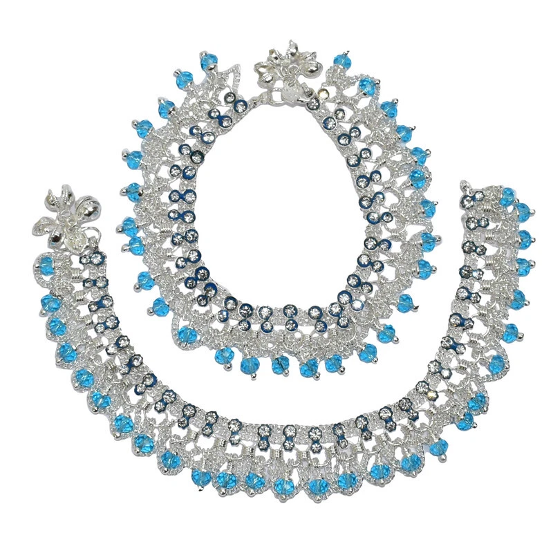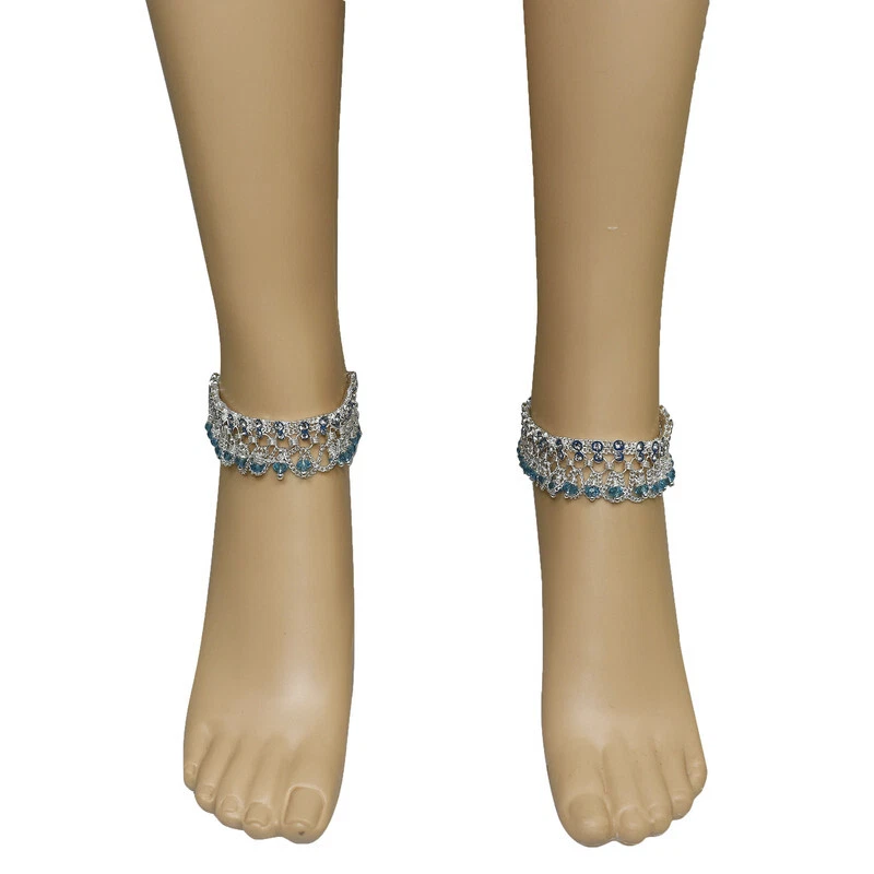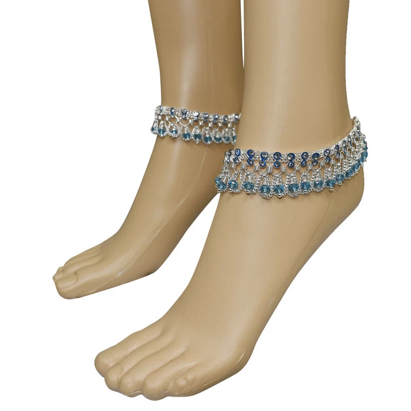 Item Description Women's Anklets Payal Indian Ankle Bracelets Chain Pair Foot Jewellery Sale For:- 1 Pair Size:- Length:-23.7cm x Width:-2.5cm (Approx) Material:- Metal Color:- Silver & Sky Blue Closure:- Hook Type:- Anklets Main Stone:- Artificial Stones & Beads About This Item New Traditional Style Anklet For Women And Girls. Ethnic Significance:- Brides Wear It To Draw Attention To And Decorate Their Feet Bells Or Chimes Make A Soft Sound When The Bride Walks Traditionally Payals Are Worn In Both Feet. Style Tip:- Perfect For Spring And Summer Wear.Compliments Most Outfits.Casual Chic Everyday Wear. Perfect Traditional Anklet Contemporary Look,Ideal For Any Ethnic Outfits Like Saree,Lehenga,Gowns,Bridal Wear,Party, Festival,Any Special Occasion, Dance Or As Fashion Novelty Costume Accessories. Ideal For:- Christmas,Thanks Giving,New Year,Valentine,Birthday,Anniversary Or Any Occasion,Gift For Someone You Love Jewellery Care:- Can Be Used In Water But Dry Completely Before Storing. Note:-Buyers Will Be Responsible For Pay Their Country'S Custom Duties Charge, Import Charges And Other Charges (If Applicable) .