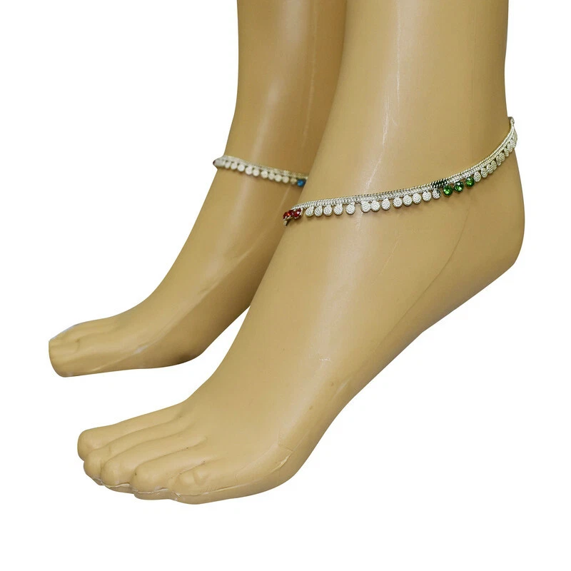 Item Description Women's Anklets Payal Indian Ankle Bracelets Chain Pair Foot Jewellery Sale For:- 1 Pair Size:- Length:-26cm x Width:-0.5cm (Approx) Material:- Metal Color:- Silver Closure:- Hook Type:- Anklets Main Stone:- Artificial Stones & Beads About This Item New Traditional Style Anklet For Women And Girls. Ethnic Significance:- Brides Wear It To Draw Attention To And Decorate Their Feet Bells Or Chimes Make A Soft Sound When The Bride Walks Traditionally Payals Are Worn In Both Feet. Style Tip:- Perfect For Spring And Summer Wear.Compliments Most Outfits.Casual Chic Everyday Wear. Perfect Traditional Anklet Contemporary Look,Ideal For Any Ethnic Outfits Like Saree,Lehenga,Gowns,Bridal Wear,Party, Festival,Any Special Occasion, Dance Or As Fashion Novelty Costume Accessories. Ideal For:- Christmas,Thanks Giving,New Year,Valentine,Birthday,Anniversary Or Any Occasion,Gift For Someone You Love Jewellery Care:- Can Be Used In Water But Dry Completely Before Storing. Note:-Buyers Will Be Responsible For Pay Their Country'S Custom Duties Charge, Import Charges And Other Charges (If Applicable).