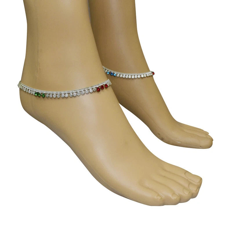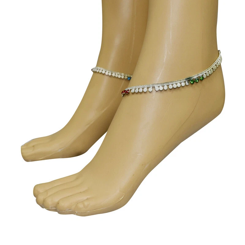 Item Description Women's Anklets Payal Indian Ankle Bracelets Chain Pair Foot Jewellery Sale For:- 1 Pair Size:- Length:-26cm x Width:-0.5cm (Approx) Material:- Metal Color:- Silver Closure:- Hook Type:- Anklets Main Stone:- Artificial Stones & Beads About This Item New Traditional Style Anklet For Women And Girls. Ethnic Significance:- Brides Wear It To Draw Attention To And Decorate Their Feet Bells Or Chimes Make A Soft Sound When The Bride Walks Traditionally Payals Are Worn In Both Feet. Style Tip:- Perfect For Spring And Summer Wear.Compliments Most Outfits.Casual Chic Everyday Wear. Perfect Traditional Anklet Contemporary Look,Ideal For Any Ethnic Outfits Like Saree,Lehenga,Gowns,Bridal Wear,Party, Festival,Any Special Occasion, Dance Or As Fashion Novelty Costume Accessories. Ideal For:- Christmas,Thanks Giving,New Year,Valentine,Birthday,Anniversary Or Any Occasion,Gift For Someone You Love Jewellery Care:- Can Be Used In Water But Dry Completely Before Storing. Note:-Buyers Will Be Responsible For Pay Their Country'S Custom Duties Charge, Import Charges And Other Charges (If Applicable).