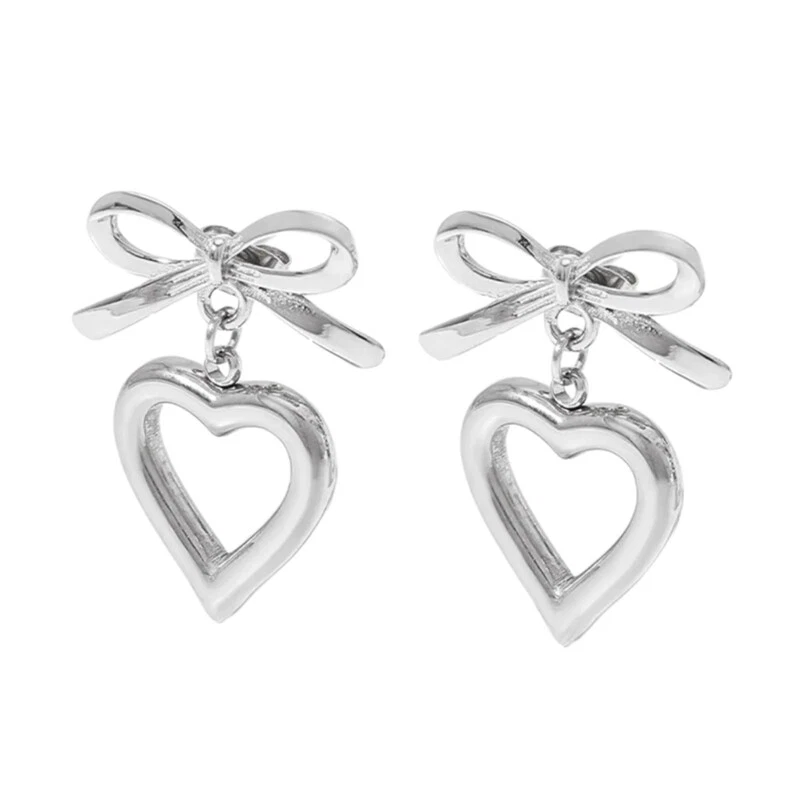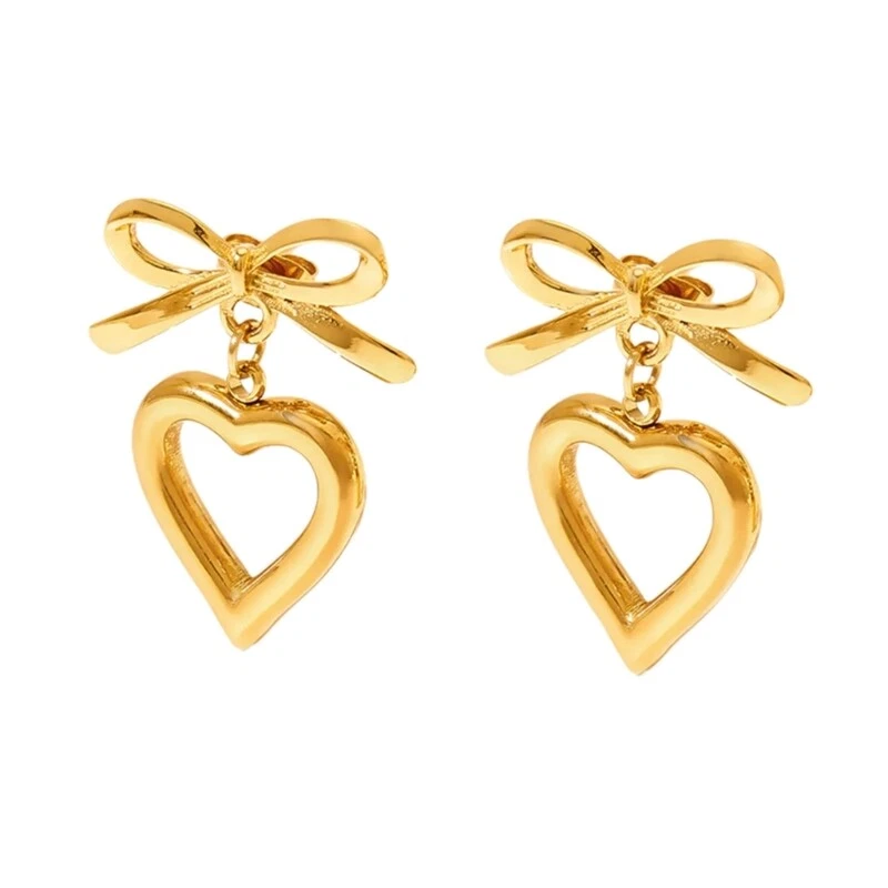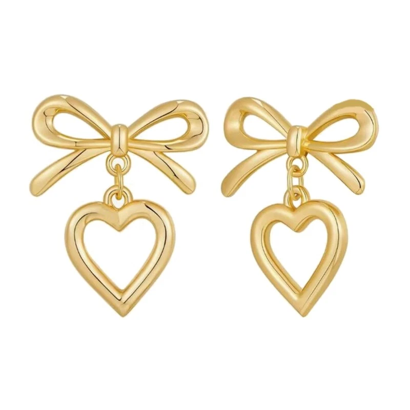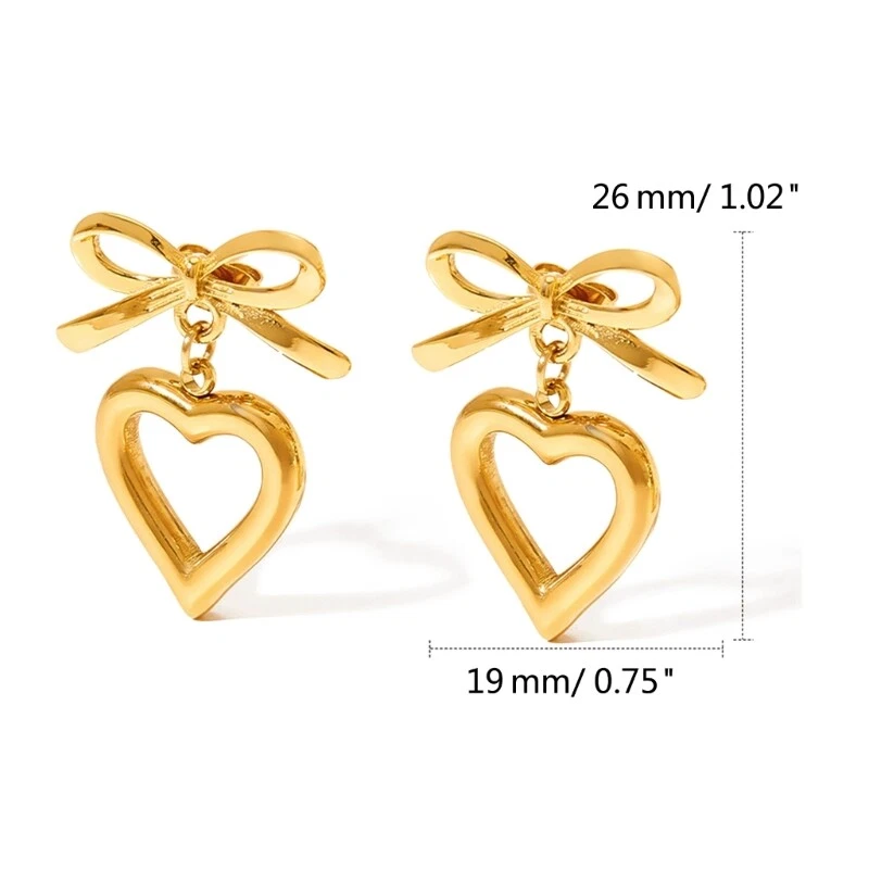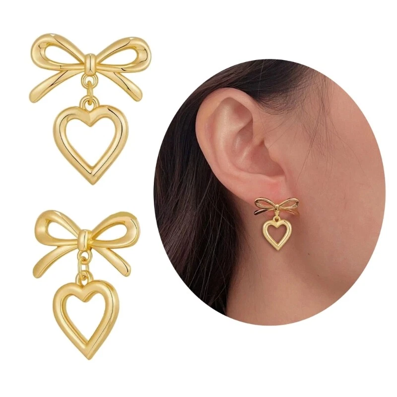 Features: Hollow Heart bowknot pendant features a unique designs that showcases the combination of fashion and romance. Made from alloy materials, it has antiallergics properties, is lightweight and comfortable, not easy to fade, and is comfortable to wear. Suitable for women who enjoy sweet styles, it can showcases charm in daily wear, parties, dates, and other occasions. Can be paired with various clothing, such as dresses, T-shirts, suitable for daily life, gatherings, vacations and other occasions, adding highlight to the overall Giving these earrings as a to family, friend, or partners is both meaningful and showcases your care. Specifications: Alloy Color: Gold/Silver Size: As shown in the picture Package Includes: 1pair Earrings note: Please allow 1-2cm errors due to manual measurement, make surely that you not mind before order. Due to difference between different monitors, the picture may not reflect the actual color.