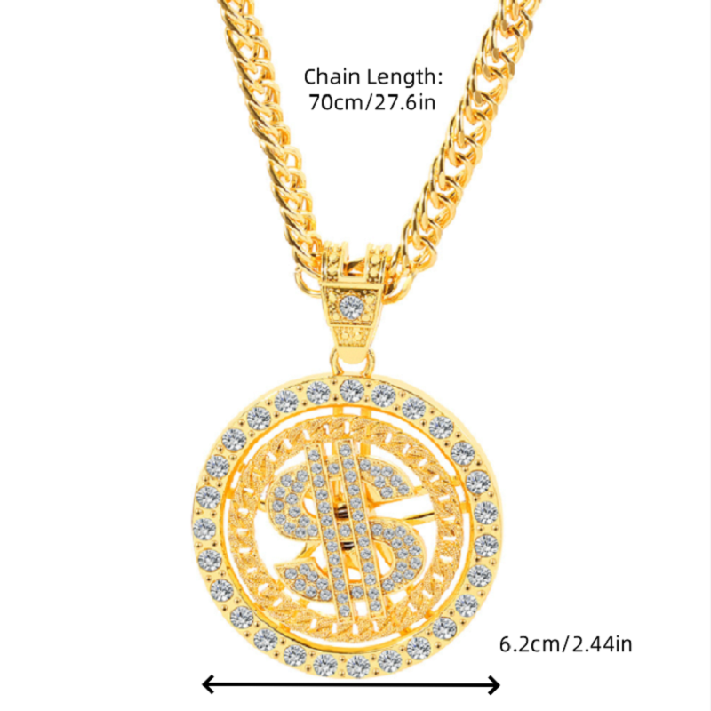 Product features: The Rotating Dollar Pendant Necklace features high-quality synthetic cubic zirconia that closely resembles real diamonds, offering a luxurious yet affordable choice. Crafted from premium copper, this necklace ensures long-lasting durability without losing its shine or fading, making it perfect for everyday wear. Its classic Cuban link design exudes timeless elegance and pairs effortlessly with any outfit. Designed for both men and women, this versatile necklace complements a variety of styles, making it a fashionable accessory suitable for everyone. About us: -Have any Questions? Please send an eBay message. Shipping: -Free Domestic Shipping, Shipped within 2 Business Day! Return Policy: -30 day money back guarantee! On Jul 21, 2025 at 00:28:24 PDT, seller added the following information: