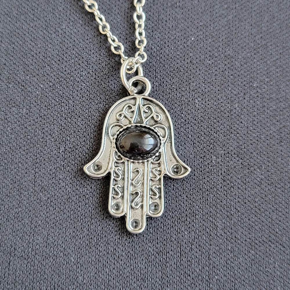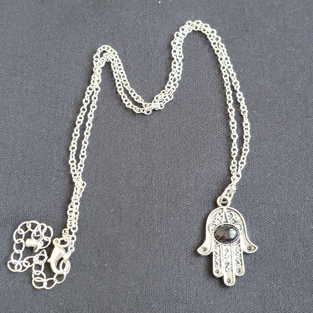 9 Pc Lot Fashion Jewelry Variety Silver Tone Metal Hamsa Hand Of Fatima Necklace-18" Chain With 3" Extension Hand Measures-1.25" Long, 3/4" Wide Star Necklace-18" Chain With 3" Extension Star Measures-1/5" Leaf Part Of Earrings Measures-1" Long Cross Part Of Earring Mesures-3/4" Long Small Cross Measures 1 3/8" Long, 3/4" Wide Sword Pendant Measures-2.3/4" Long, 1" Wide All From Boutique Liquidation Fashion Jewelry Jewelry Making Gifts Personal Use All New Pieces Never Worn Or Used Every Effort Has Been Made To Accurately Describe & Photograph This Item. Some Colors May Vary Depending On Lighting & Device Used To View. Please Reach Out If You Have Questions Prior To Purchase. I Am Happy To Help. Shipping From A Smoke & Pet Free Facility. USPS Ground Advantage