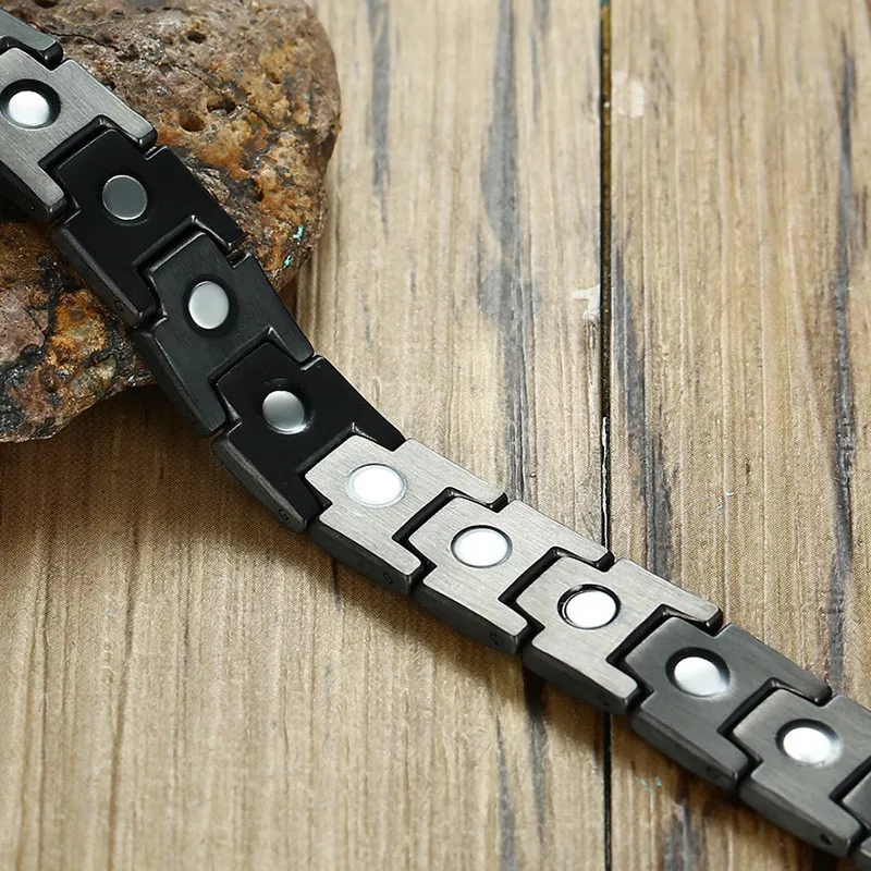 It is a good gift for your lover,friend, father or brother Trusted pain relief for arthritis carpal tunnel for health Color: Black with Gold Line Material: Stainless Steel + Magnet Size: about 12 mm * 270 mm Package Included: Anklet*1pc Magnetic therapy is believed to help with the following: Alleviation of foot arthritic pain Reducing Inflammation Improving Blood Circulation Reduce stress, anxiety, fatigue, insomnia 4 DIFFERENT TYPES OF NATURAL PROPERTIES - - These are some of the most efficient for health therapy jewelry Earth Neodymium Magnets