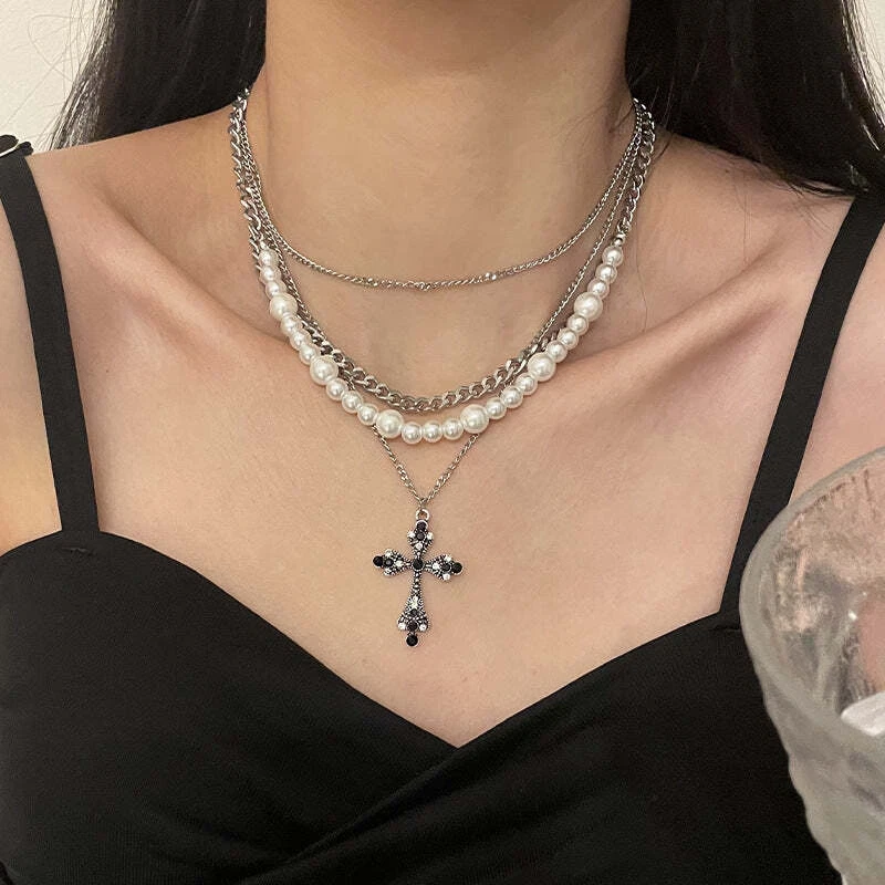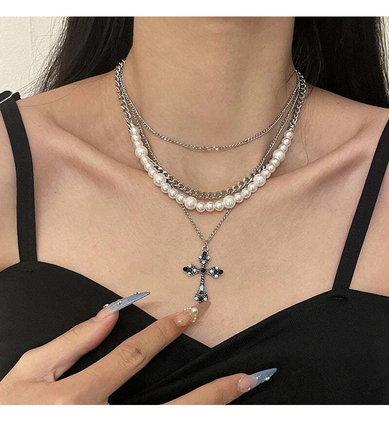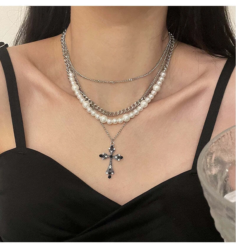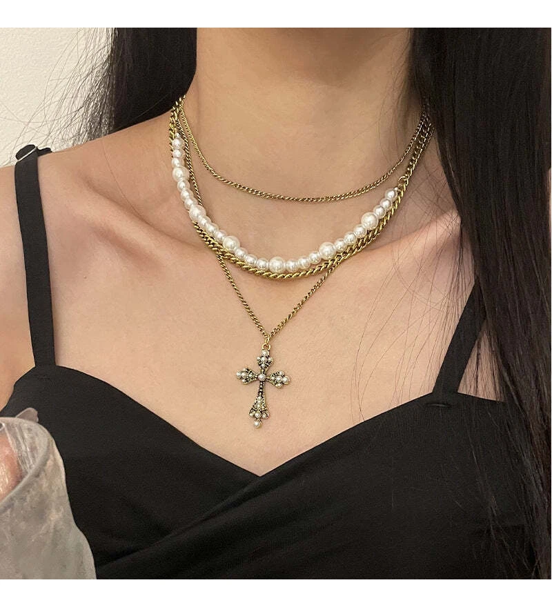 Overview: Unique design, stylish and beautiful. Good material, High quality. Product information: Color: Silver Pearl cross multi-layer necklace [titanium steel chain], Gold Pearl cross multi-layer necklace [electroplated]] Applicable people: women Pendant material: Alloy Chain style: curb necklace Material: titanium steel Shape:-1, Star, geometric Popular elements: Cross Style: cold wind Packing list: Necklace *1 Product Image: