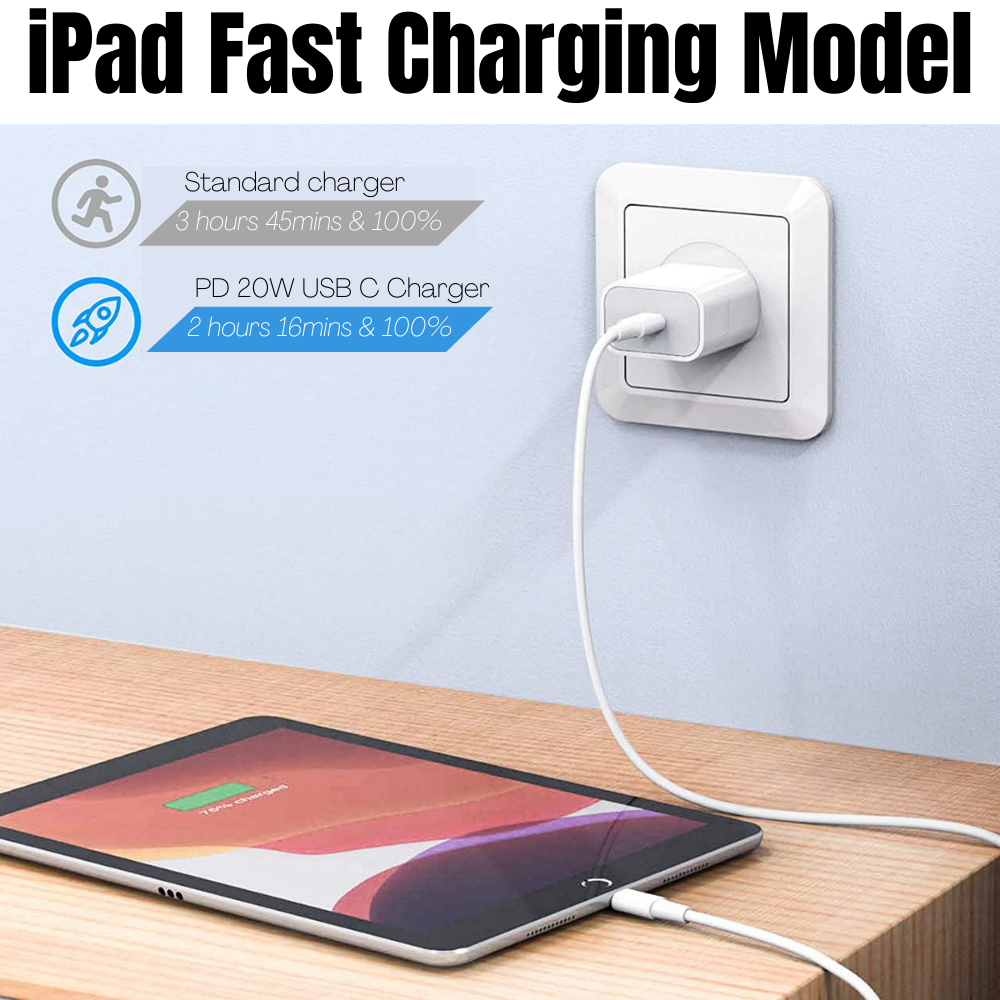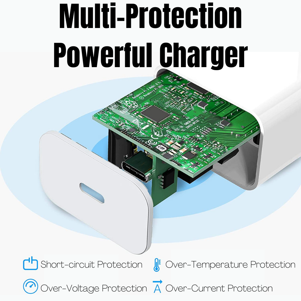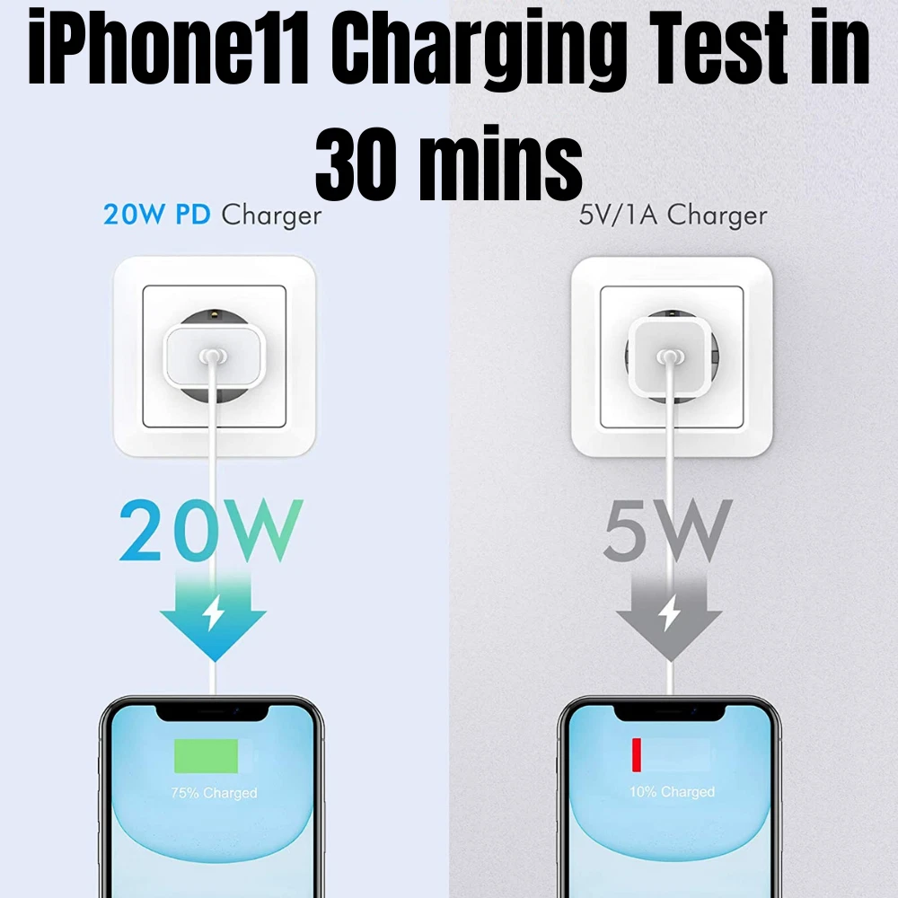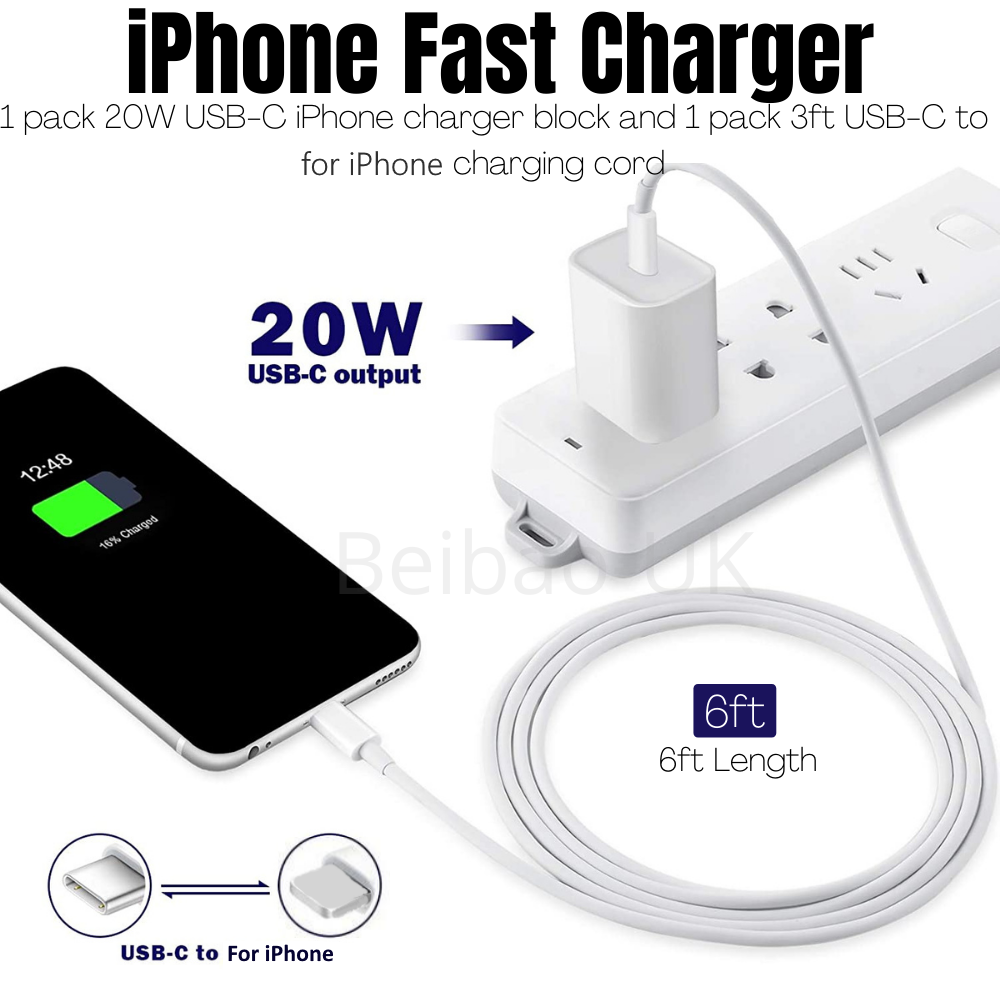 Description: 20W Fast Charger : The wall charger for iPhone 13/12/11 series supports a rapid charge up to 3A(20W Max), you can charge your Phone from 0 % to 50% in about 30 minutes. Charge 2.5x faster than the ordinary 5W charger, greatly saving your charge time. Safe and Reliable : The 20W fast charger wall adapter has multi potent safety system ensures complete protection for your devices. The wall charger built-in safeguards protect your devices against excessive current, overheating, and overcharging. Our charging cable is built with original smart chip, fit for iPhone compatibility and without error message pop up. Durable Design: 20W USB-C power adapter built with robust casing and premium internal components can withstand scratches, bumps or drops. High-class connector and copper core wire enhance durability. Comprehensive Compatibility : For iPhone 13/13 Mini/13 Pro/13 Pro Max For iPhone 12/12 Mini/12 Pro/12 Pro Max For iPhone 11/11 Pr/11 Pro Max For iPhone XS/XS Max For iPhone XR/X For iPhone 8/8 Plus For iPad Pro 10.5”/ iPad Air 3 10.5”/ iPad Mini5 7.9” and more.