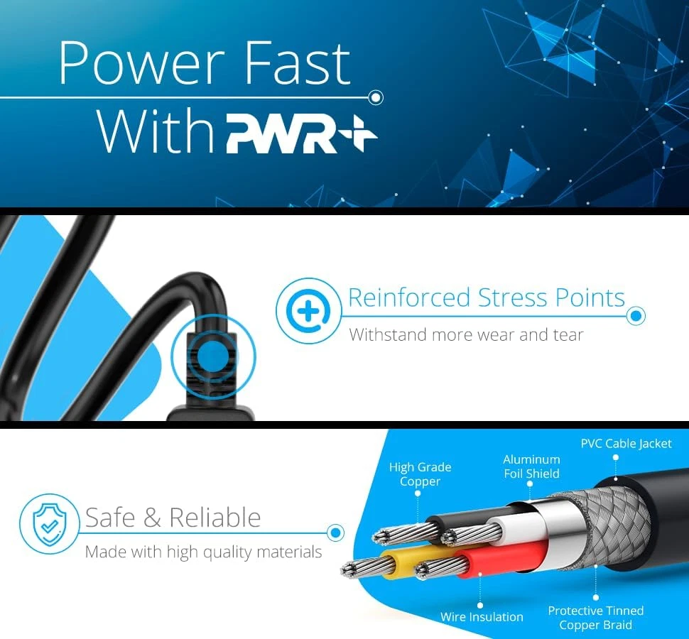 FEATURES / POWER SPECS : High Quality 3 Prong Long 3 Feet AC Power Cord / UL RoHS Certified SVT 3/C 18AWG(0.824mm2) 90°C 300V E516770 FT2 / CONNECTORS : IEC-60320 (IEC320) C5 to NEMA 5-15P WARRANTY: 30 Days Refund - 24 Months Exchange. PWR+ is WA, USA based company. We are friendly Customer Support Experts SAFETY / UL LISTED: Pwr+ cables manufactured with the highest quality materials. UL/CE/FCC/RoHS certified. COMPATIBILITY: Segway Ninebot MAX G30, G30P Electric Kick Scooter Kickscooter; LG LED LCD Smart 1080p HDTV 32LB580B 32LB5600 32LN570B 42LN5400 42LB5600 42LN5700 42LN5300 47LB5800 47LB5900 50LB5900 49LB5550 50LN5400 50LB6100 55LB5900 55LB5550 55LB6100 60LB6100 39LB5600; 3 Prong Laptop Chromebook Notebook AC adapters Acer Aspire, ASUS VivoBook, ROG, Toshiba Satellite, HP Pavilion, Envy, Elitebook, Probook, Lenovo ThinkPad, Carbon, IdeaPad, Yoga, Dell Inspiron, Latitude, Vostro, AlienWare, XPS, Samsung Series Product Description UL Listed - Safety First PWR+ is WA, USA based company with manufacturing facilities in Taiwan. We stand out from the rest by offering genuine UL Listed power cords and efficiency Level VI power adapters. We are 889 certified . Powering Millions of TVs, Laptops, Tablets and Electronic Gadgets worldwide since 2007 Compatibility - 3 Prong Power Cord This power cord is compatible ac power cable replacement for Segway Ninebot MAX G2, G30, G30P, P65, P100S Electric Kick Scooter Customer Support Experts Multiple safety features that work together to provide ultimate protection and performance for your devices. Checked to work efficiently unlike other generic non-certified power cables