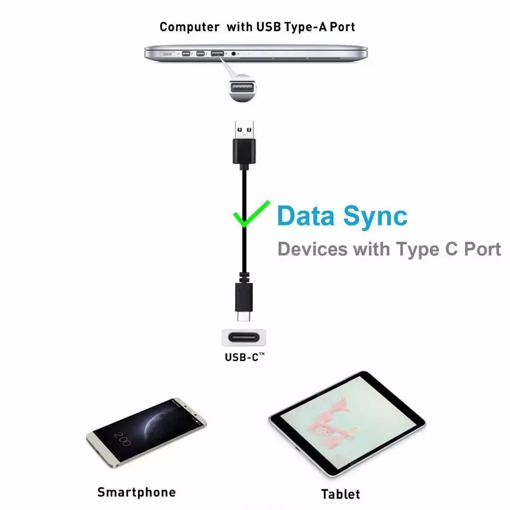 Adaptive Fast Charging USB Type-C Cable 100% Brand new and high quality Easy Installation High Quality with Reasonable Price Lightweight, portable, convenient USB version: Type C Connectors: USB 3.1 Type-C Male, USB 3.0 Type-A Male Cable length : 1.2m / 4 Feet Color: Black Package Included: 1/3/5/10/20/50/100x USB Charging Cable(Depend on your choice) Compatible with:Please note that if you need fast charging, your charging adapter must also support fast charging.