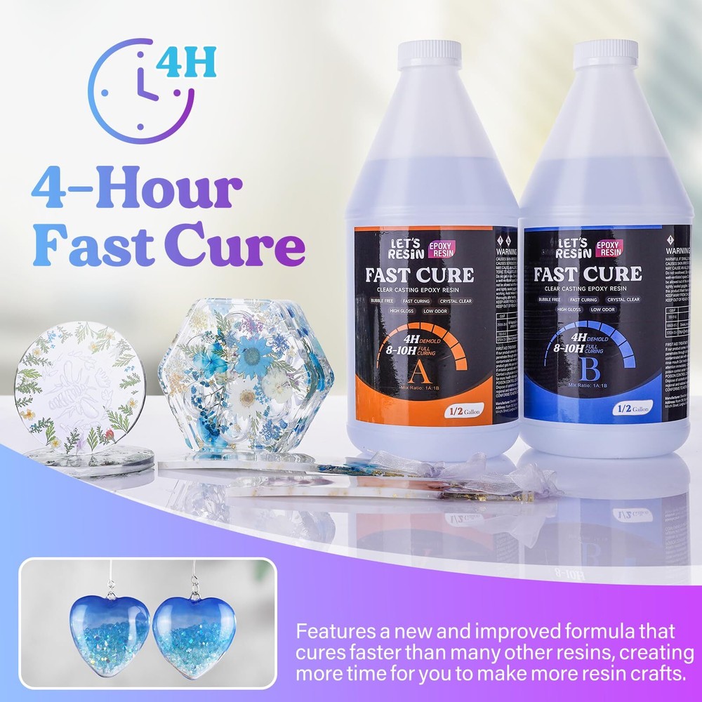 Fast Cure Resin Epoxy for Jewelry,1 Gallon Quick Dry Resin-4 Hours Demold,Crystal Clear & Bubble Free Casting Epoxy for Painting,Craft,Art,Molds ⏰Short to 4 Hours Fast Cure: Our quick dry epoxy resin ensures an unparalleled setting time of 4-10 hours, significantly faster than other resins.With quick curing, you have more time to create stunning resin projects.Include 64oz resin+64oz epoxy hardener,4pcs 8oz plastic cups,2pcs disposable gloves,10pcs stir stick. 💎High quality Epoxy Resin: Achieve glossy and durable finishes on your creations with this high-performance fast cure epoxy resin.Whether you're a professional artist or a DIY enthusiast, our 2 part epoxy resin caters to your artistic needs, providing a reliable and efficient solution for your creative endeavors. ⭐ Crystal Clear & Bubble Free:Our clear epoxy resins are made of safe and premium materials,cures to a crystal clear finish, superior high gloss, bubble-free, Moreover, compared with other epoxy resins, this epoxy resin for the craft is featured by its self-levelling, low odor, and yellowing resistance. Complete your perfect artwork without other worries. 🔮Versatile Applications: Ideal for a variety of projects, including art, crafts, jewelry,painting,pendant, coaster,keychain,domino,dice. Highly compatible with silicone molds or various other materials,allowing for unlimited possibilities for your projects. 👍Easy to Use: With an easy 1:1 mix ratio, you can effortlessly create your projects.20 minutes of work time at room temperature 70-80°F. Make sure to work in a well-ventilated space to get a more comfortable experience.If you encounter any issues such as leakage or partial loss during use, please do not hesitate to contact us and we will solve them immediately. Crystal Clear Epoxy Resin: Crystal clear finish no experience needed, good for all kinds of DIY projects, big or small, from paint pouring art to creating crafts like jewelry, resin coasters. Shipping We offer FREE shipping on all orders! We ship within Three business days of payment, usually sooner. We use a selection of shipping services such as UPS, FedEx, USPS etc. We only ship to the lower 48 states, no APO/FPO addresses or PO Boxes allowed. Local pickups and combined shipping options are not provided at this time. Return You can return a product for up to 30 days from the date you purchased it. Any product you return must be in the same condition you received it and in the original packaging. Please keep the receipt. Payment We accept payment by any of the following methods: PayPal Please pay as soon as possible after winning an auction, as that will allow us to post your item to you sooner! Feedback Customer satisfaction is very important to us. If you have any problem with your order, please contact us and we will do our best to make you satisfied. Contact Us If you have any queries, please contact us via ebay. We usually respond within 24 hours on weekdays. Please visit our eBay store to check out other items for sale! Thank you for shopping at our store.