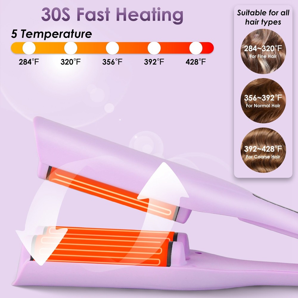 Free Shipping Featured Item Product Detail Image Gallery Product Description Overview: With a simple clamp and release, creating beautiful, uniform curls with precision and efficiency. Equipped with dual heating barrels and 1.41-inch wider plates, our curling waver ensures even heat distribution for long-lasting styling results. 30S fast heating powered by PTC heating elements guarantees quick and consistent heat output. Ceramic coating of our hair crimper releases 10 million negative ions to neutralize static and minimize hair damage, resulting in smooth, shiny, and bouncy curls. A must-have tool for achieving gorgeous curls without skills or practices. Features: 1.41" S-Shaped Curling Waver: Say goodbye to tiresome hours of practice and embrace astonishing daily beachy waves with simple clamp and release. Come with dual heating barrels and 1.41inch wider plates,our hair iron curling waver brings you even heat distribution and long-lasting styling,creating beautiful,uniform and perfect curls with ease. 30S Fasting Heating & 5Gears: Built-in PTC heating elements effectively promotes heating efficiency in about 30seconds,ensuring precise and consistent heating. 5 Adjustable temperature settings ranging from 284℉to 428℉,making this deep hair curler suitable for all hair types,whether for fine,thick,curly,or straight hair. Anti-Scald Design & 30Mins Auto Off: Safety is always prior. Full-wrap heat-insulation ABS material protects your fingers and neck from burns during operation. Designed with 30mins auto-off protection,avoid potential safety hazards if you forget to turn off this hot curling tool after use. 10Millions Ions For Less Damage: Adopts premium ceramic coating,our hair crimper with 10millions of negative ions help neutralize static and minimize your hair damage or frizzy problems,giving you a smooth,massive shine and bouncy curls. Dual-Voltage & Swivel Cord: Equipped with 110-240V dual voltage,you can have complete peace of mind when carrying our iron hair crimper waver for travel,no need to worry about voltage compatibility issues. 360° Swivel cord and lock switch allows for easy storage when not in use. Specifications: Brand: iMounTEK Product Type: Hair Curling Iron Waver Material: ABS, Ceramic Coating Color: Purple Voltage: 110-240V/50-60Hz Power: 45-120W Barrel Size: 36mm/1.41in Temperature Gear: 140/160/180/200/220℃; 284/320/356/392/428℉ Preheating Time: 30S Support: 30Mins Auto Off, Swivel Power Cord Power Cord Length: About 1.7M/66.92in Item Size: 5*7*29cm/1.96*2.75*11.41in Item Weight: 428g/0.94lbs Package Size: 36*14*7cm/14.17*5.51*2.75in Package Weight: 586g/1.29lbs Package Contents: 1x Hair Curling Iron Waver 1x User Manual Terms & Conditions Thank you for your business !