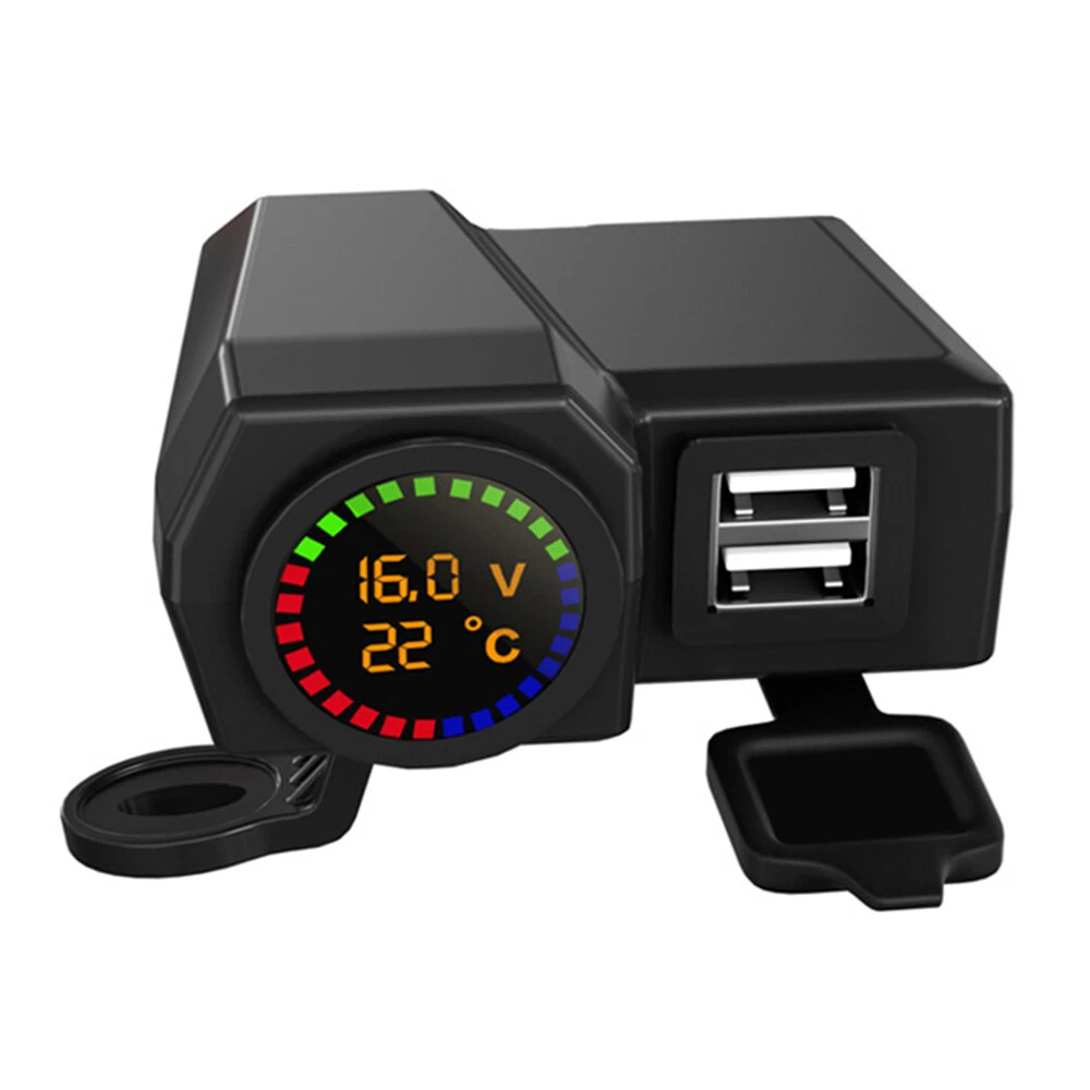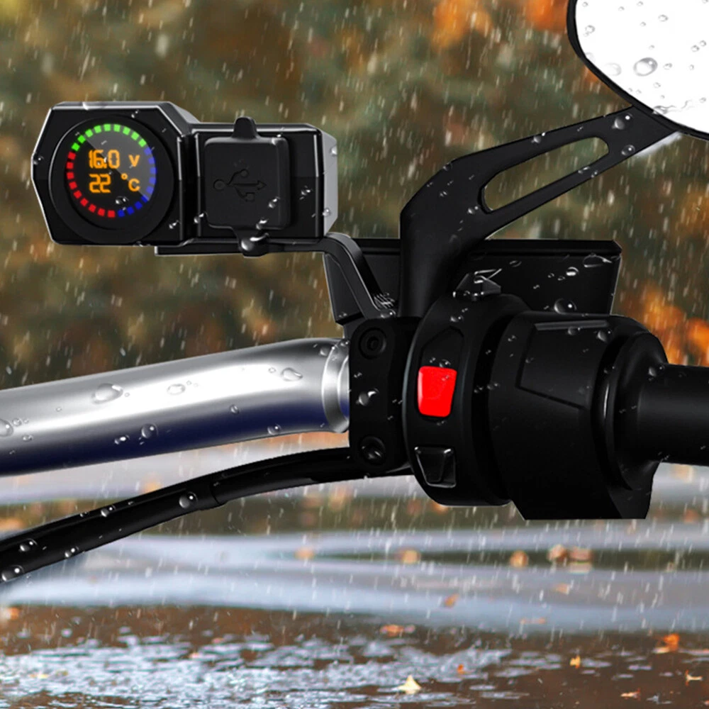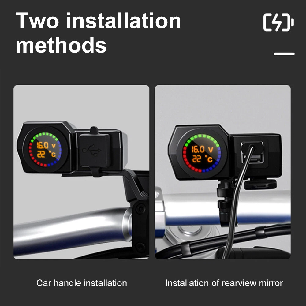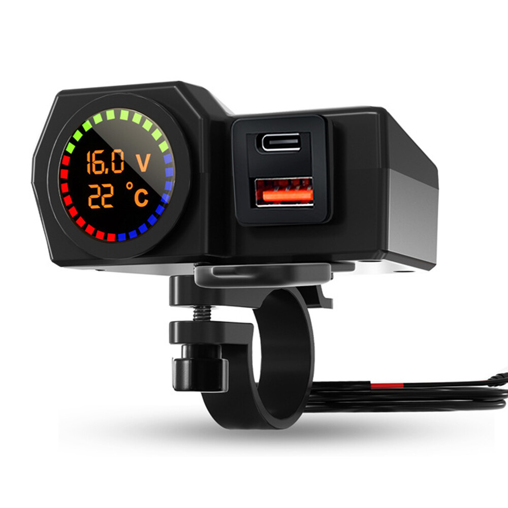Features: 1.Accurate digital display escort: real-time presentation of voltage and temperature data, just like having a car safety steward, control the charging status at any time, escort for every trip, effectively prevent potential risks, so that the journey is worry-free. 2. Dual charging efficient and convenient: equipped with dual USB ports, perfectly adapted to various types of digital devices, easy to realize the rapid charging of two devices at the same time, say goodbye to power anxiety, whether it is a cell phone navigation or car recorder, can always maintain a full state of power, enhance travel efficiency. 3. Switch control: independent switch design, simple and convenient operation, with the use of open, closed when not in use, not only energy saving, but also effectively avoid the potential safety hazards that may be caused by prolonged energization, so that your use of more worry, peace of mind. 4. Waterproof, dustproof and durable: professional waterproof design with dustproof and waterproof cover, fearless of rain, dust and other harsh environments, to ensure stable operation of the internal circuitry, which greatly extends the service life of the product, whether it is muddy cross-country road or wet rainy season, can be a stable power output. 5. Intelligent protection and worry-free: advanced intelligent protection system, all-round monitoring of current, voltage and other key parameters, in case of abnormalities, automatic power-off protection, to reduce the safety risk of the power of science and technology, to provide a solid and reliable security for your cycling charging process, to enjoy a worry-free journey. Specification: Item: Motorcycle Dual PD USB Charger Material: PC Input voltage: 12-24V Output voltage: 5/9/12V Voltage measurement range: 6V-30V USB output: 60W(QC3.0 30W + PD30W) Size: 77x59x36mm Cable length: 90cm Mounting method: handlebar/mirror stand (with mounting bracket) Connection method: red wire to power positive, black wire to power negative Package List: 1 x Motorcycle USB Charger 2 x Mirror mounting bracket 1 x Handlebar mounting bracket 1 x Anti-skid gasket 6 x Screws and nuts accessories Note: Due to different light and screen settings, the item color may be slightly different from the picture. Please allow 1-2cm size difference due to different manual measurement. On Dec 23, 2024 at 19:38:17 PST, seller added the following information: