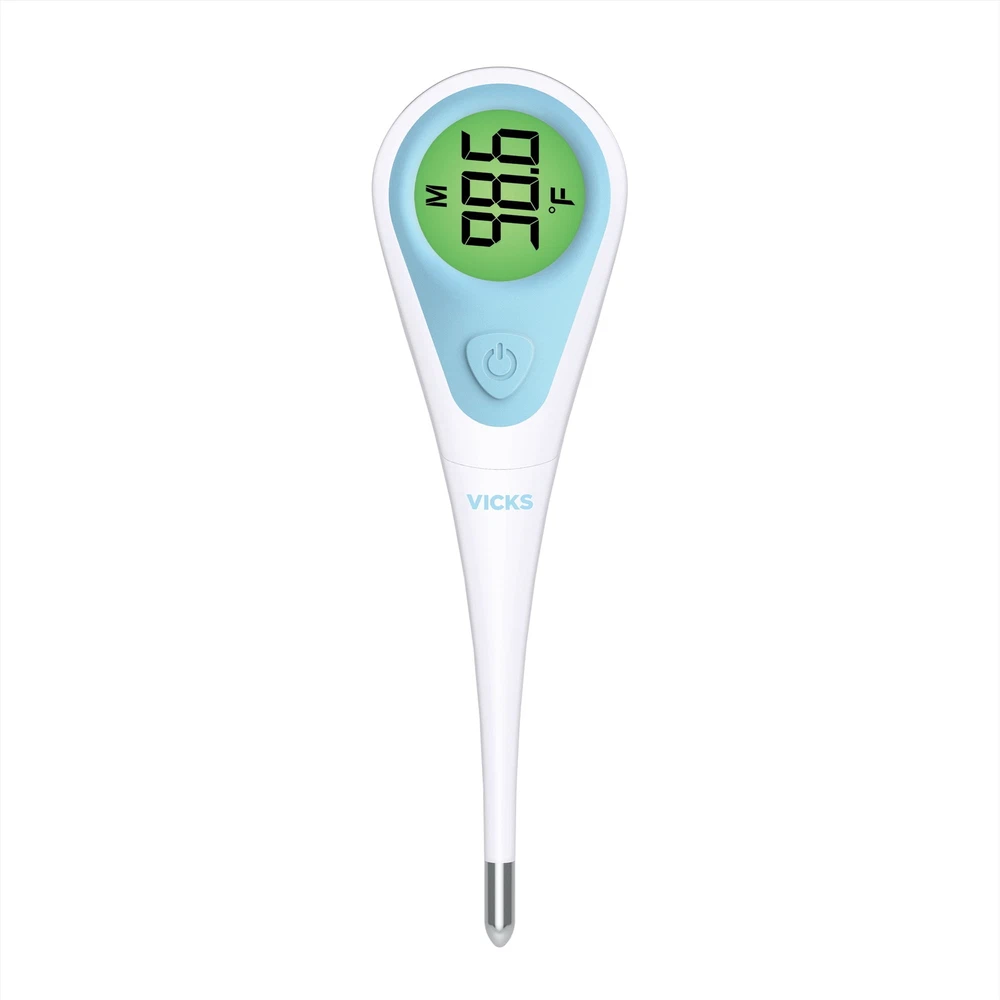 Get temperature results quickly and easily when you need them most. The digital thermometer provides accurate readings within +/- 0.2 degrees Fahrenheit in just 8 seconds. The unique color display helps you get temperature readings at a glance and easily understand them. The green display indicates normal temperature, yellow indicates elevated temperature, and the red display indicates high temperature. Since it can be used as both an oral thermometer for adults and a rectal thermometer for babies, and can even be used under the armpits of toddlers and children, it's perfect for the whole family. It also has a memory function that recalls and displays the last temperature measured, auto shutoff to extend battery life, and is waterproof for easy and thorough cleaning. Fast, Accurate Results - This thermometer provides accurate, easy-to-understand readings in just 8 seconds, so you can get results quickly when you need them most. It also has a memory function that recalls and displays the last temperature measured Easy to Read - Color coding helps you get temperature readings at a glance and easily understand them. Green display indicates normal temperature, yellow indicates elevated temperature, and red display indicates high temperature VERSATILE - With an 8-second turnaround time, this thermometer is perfect for adults as well as infants, toddlers, and children. Use as an oral digital thermometer, a baby rectal thermometer, or an underarm thermometer SPECIAL FEATURES - This digital thermometer is waterproof, easy to clean thoroughly, and has an auto-off feature to extend battery life. A CENTURY OF POWERFUL RELIEF - We believe everyone deserves a little TLC. You can count on our line of adult, child, and baby thermometers to deliver fast, accurate results when you need them most