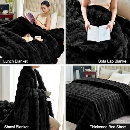 Return Policy Fast Delivery Trusted seller Faux Fur Black Throw Blacket for Couch - Super Soft Heavy Flufyy Thick Bubble Throw Blankets for Bed Bedroom Living Room Farmhouse Sofa Chair Fall Winter Warm, 90x108 Inch Product Description Reversible Chunky Blanket - Versatility of our unique reversible blanket. The soft faux rabbit fur front is complemented by a cozy flannel back for all your comfort needs. Double-sided blanket is super warm, giving you spring-like warmth life Anti Static & Not Lint - Our blanket is carefully woven with high quality faux rabbit fur, which eliminates static cling and prevents lint from falling out, providing long-lasting freshness for you and your family Bubble Design- Adds visual depth and interest while harmonizing with Scandinavian minimalist style and adding a unique aesthetic appeal. This elegant and understated design blends well with any home decor and enhances the sophistication of your life Suitable for Any Occasions - Ideal for living rooms, bedrooms, beds, chairs, and sofas, this blanket can be transformed into a cozy sofa blanket, stylish rug, or comfy bedspread. Whether for gathering, movie, relaxing alone, indispensable in your daily life Care Instructions - To preserve blanket's softness and warmth, we recommend gentle machine washing with mild detergent. Avoid bleach! After washing, gently squeeze excess water, lay flat to dry, and protect from direct sunlight Shipping Returns Payment Shipping Shipping is FREE to all addresses other than APO/PO boxes in the lower 48 states. All our stock ships from US-based warehouses. Shipped via USPS or UPS (depending on location and package weight) Unless stated otherwise, all orders will ship within 24-72 hours of your payment being processed. Check our feedback to see the great reviews of FAST shipping we offer. Returns Seller does not accept returns Payment We currently accept payment via eBay managed payments only. Once payment is cleared, we will dispatch your shipment within 1-3 business days. Please refer to the "Shipping" tab for more information regarding shipping speed to your destination.