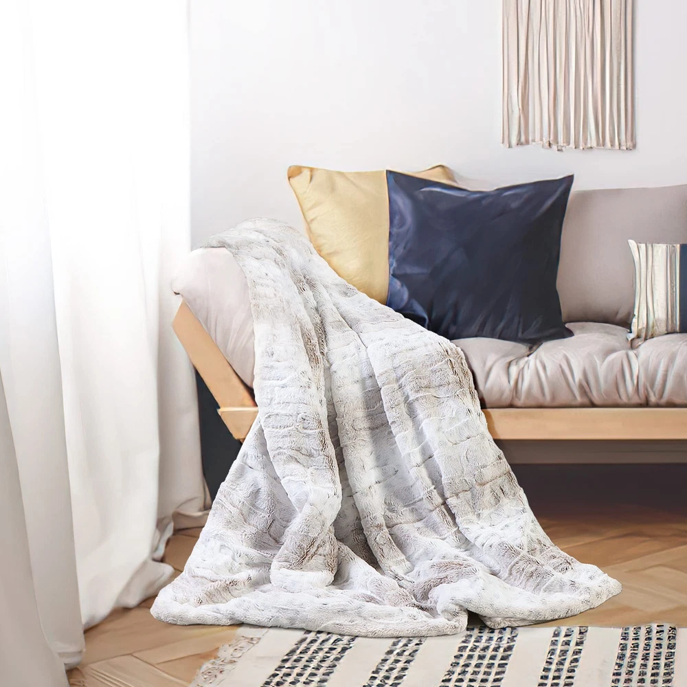 VERY HIGH QUALITY throw blanket for bed or couch | soft plush faux blanket throw with a luxury blanket feel | snuggly, warm and cozy, natural neutral colors, | luxurious faux fur farmhouse throw with white polyester micro mink reverse side GIVE YOUR ROOM THE WOW FACTOR - with our elegant high end design bed throw or chair throw | drape your elegant blanket throw over a chair, couch or bed to add a stylish touch | Has a neutral tone - cream and pale caramel and white throw blanket with a marbled look | goes with any house decor. ALL SEASON BLANKET THROW - You'll want one for each family member | add extra warmth to your bed | use as a travel blanket | use it in the car for the kids to help them sleep | or as a comforting toddler blanket | Great as a guest room blanket | Even the pets love it - and it doesn't show pet hair! SPECIAL GIFT - A thoughtful anniversary, birthday, christmas, or housewarming present. Lovely gift for mom for mothers day | 55" x 70" extra generous size | ultra-soft faux fur throw blanket is 100% polyester faux fur | easy maintenance, cool machine wash and drip dry HAPPINESS GUARANTEED - we will refund you if you're not 100% happy | We want you to come back to over and over.