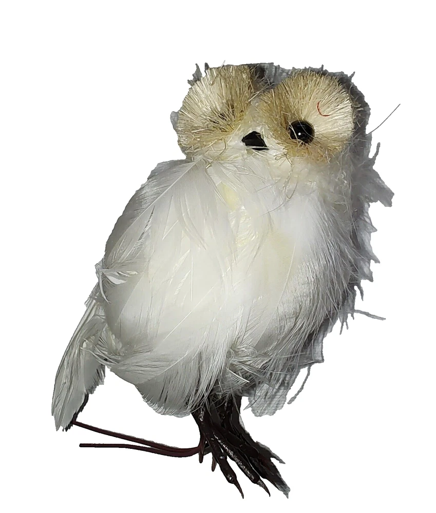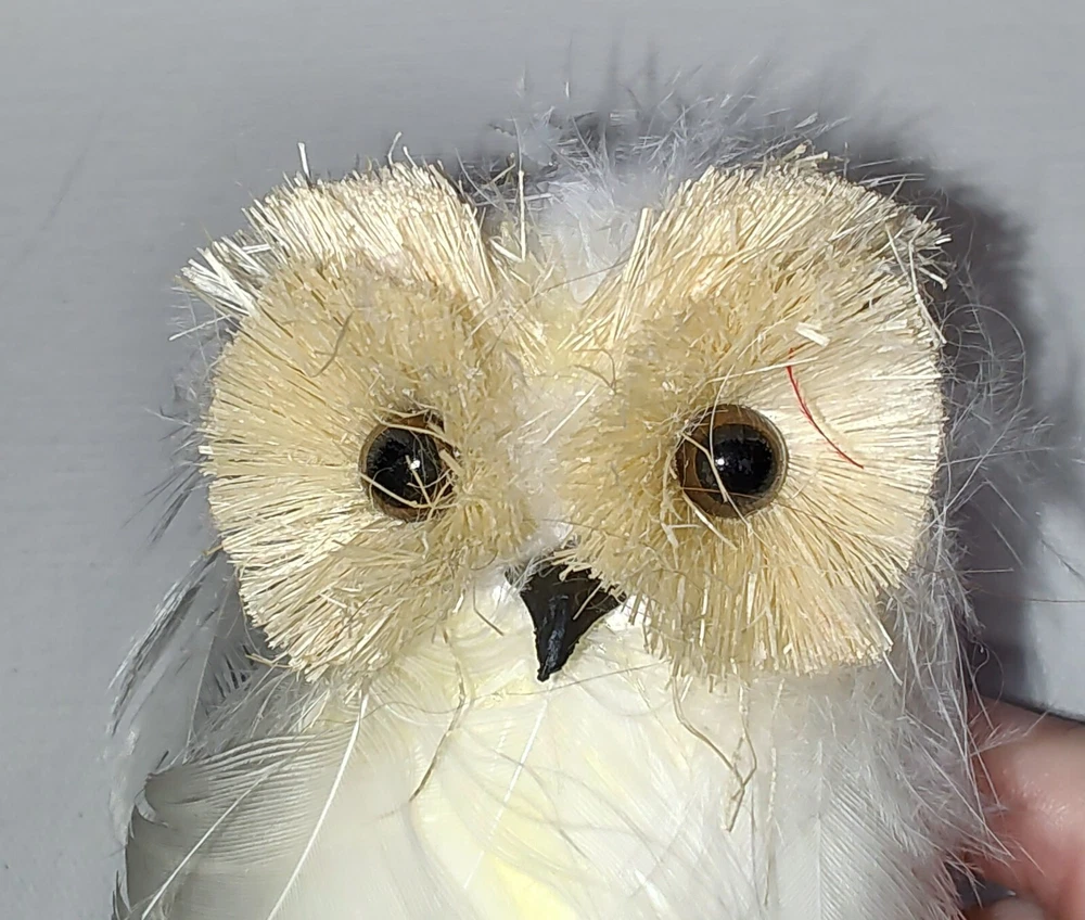 Faux Fur White Owl Woodland Ornament 4" Long Very Lightweight Cute Fuzzy