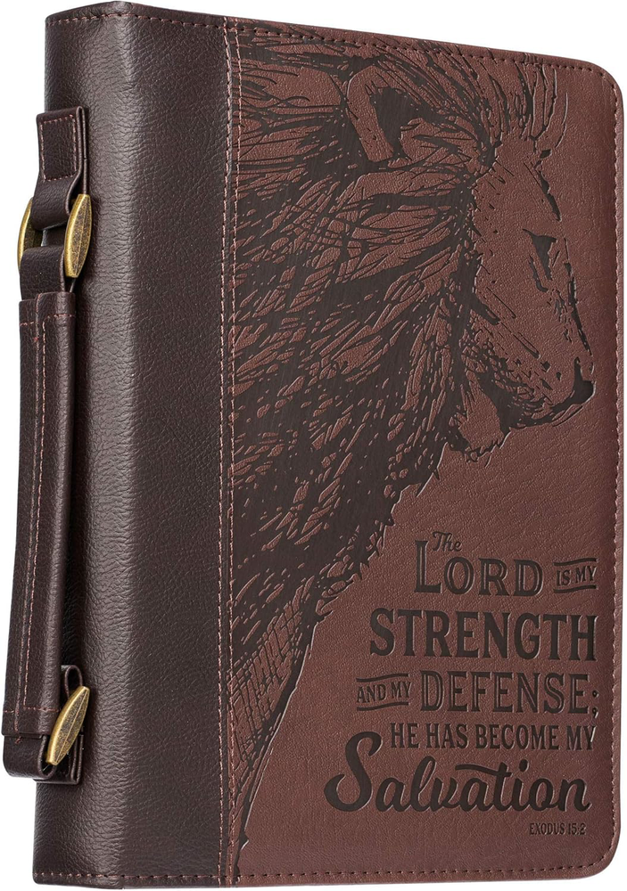 Absolutely love this Bible cover! The faux leather feels premium, and the lion design with Exodus 15:2 is beautifully detailed. Perfect size, sturdy stitching, and the rich brown color looks elegant. Shipping was lightning-fast, and the seller’s customer service is top-notch—highly recommend for a meaningful gift or personal use!