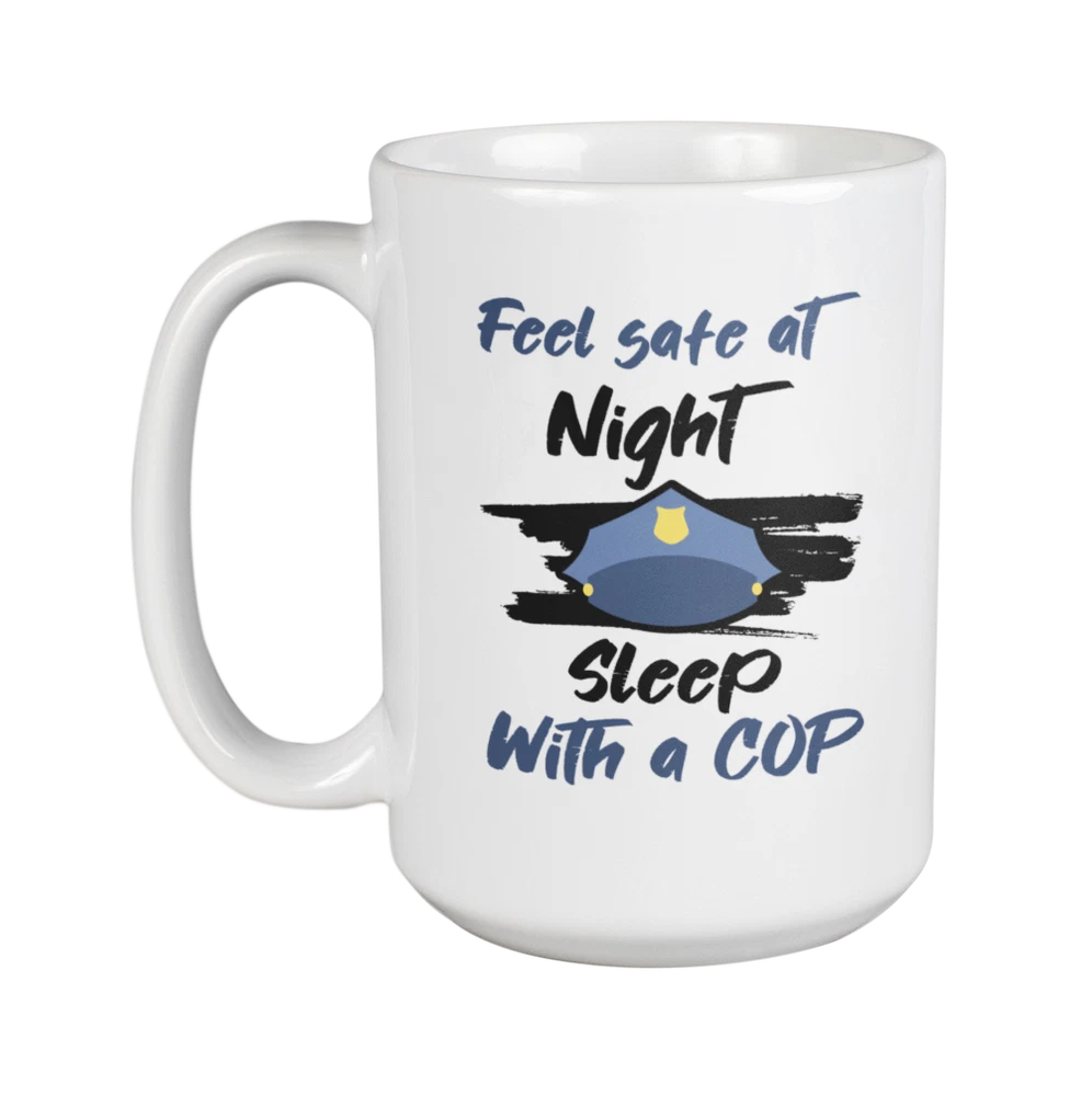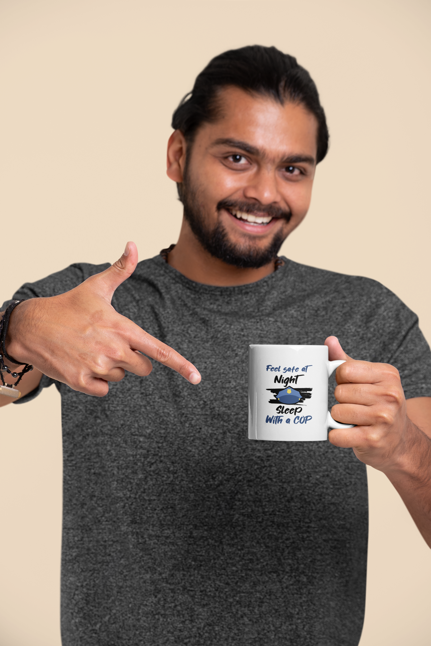 Feel Safe At Night Sleep With A Cop. Humorous Coffee & Tea Mug