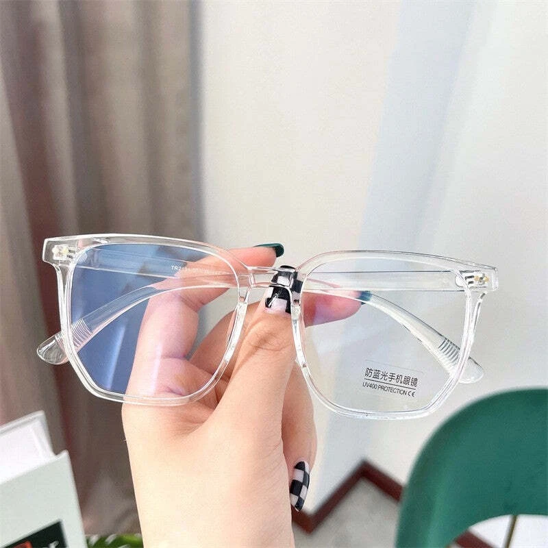 Product information: Product name: Glasses Glasses structure: full frame Lens material: resin Lens function: anti-radiation, anti-blue light Style: personality, unisex style, ins style Frame color: black under the transparent frame, bright black frame, champagne frame, transparent frame, transparent gray frame Lens color: TR90 + anti-blue light lenses Frame width: 14.7cm Nose bridge width: 2cm Lens width: 5.4cm Frame height: 5.3cm Leg length: 14.5cm Packing list: Glasses x1
