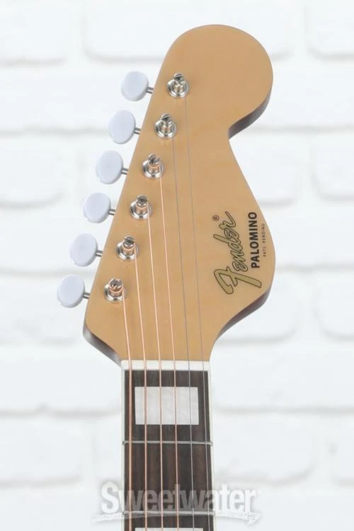Beach Vibes with Professional Perks! The California Vintage Palomino by Fender blends solid tonewoods, stage-ready features, and West Coast style into one timeless acoustic-electric guitar that demands double takes! Bold tonewood credentials across the entire body include a solid Sitka spruce top, ovangkol back and sides, an okoume neck, and an ovangkol fingerboard. Such vibrant materials usher the classic appeal of full-bodied acoustic tone packed with plenty of volume and projection. Sweetwater guitarists have found the Auditorium body shape makes the California Vintage Palomino playable and balanced in any scenario. Meanwhile, an okoume neck with a vintage-inspired modern “V” carve optimizes comfort for strums, plucks, and picking across an ovangkol fingerboard. The California Vintage Palomino’s built-in Fishman Sonitone Plus system delivers top-notch amplification for an authentic sound fueled by not just one but two capture points for sound. Finally, this masterpiece is stitched together with a Viking-style bridge, bold block Sweetwater is an Authorized Fender Dealer Genuine New Item Sweetwater's 2-year warranty and 55 point inspection Fender California Vintage Palomino Acoustic-electric Guitar - Sienna Sunburst 6-string Acoustic-electric Guitar with Spruce Top, Ovangkol Back, Sides, and Fingerboard, and Okoume Neck - Sienna Sunburst Beach Vibes with Professional Perks! The California Vintage Palomino by Fender blends solid tonewoods, stage-ready features, and West Coast style into one timeless acoustic-electric guitar that demands double takes! Bold tonewood credentials across the entire body include a solid Sitka spruce top, ovangkol back and sides, an okoume neck, and an ovangkol fingerboard. Such vibrant materials usher the classic appeal of full-bodied acoustic tone packed with plenty of volume and projection. Sweetwater guitarists have found the Auditorium body shape makes the California Vintage Palomino playable and balanced in any scenario. Meanwhile, an okoume neck with a vintage-inspired modern “V” carve optimizes comfort for strums, plucks, and picking across an ovangkol fingerboard. The California Vintage Palomino’s built-in Fishman Sonitone Plus system delivers top-notch amplification for an authentic sound fueled by not just one but two capture points for sound. Finally, this masterpiece is stitched together with a Viking-style bridge, bold block inlays, and a Stratocaster headstock for chiseled looks that mirror the rugged, beautiful duality of West Coast terrain. Solid tonewoods up the ante Par for the course, the Fender team sourced high-quality solid tonewoods for the California Vintage Palomino acoustic-electric guitar. A solid Sitka spruce top delivers gold-standard acoustic guitar tone with strong resonance and a dynamic sensitivity that fuels passionate playing. Ovangkol back and sides support spruce with lasting sustain and a full-bodied tone that’s frequently compared to mahogany. These tonewoods pair well with the fine-tuned power, playability, and focus of an Auditorium body style. Auditorium guitars walk a fine line by enhancing the dimensions of all-purpose dreadnoughts with some player-friendly tweaks. At either end, your hands are freer to fret and strum, thanks to a drawn-in waist that also enhances clarity. Such features make the California Vintage Palomino an exceptional pick for gigs and recording, but most importantly, the guitar is downright fun to play hour after hour. “V” is for vintage ... with a modern twist! “V” neck profiles are making a serious comeback, and for good reason! This retro neck style features a subtle ridge that gives your thumb better comfort and support. “V” necks were widespread when guitars were built with hand tools. Modern machinery made smoother shapes possible, but many players still value the extra grip and support the old-school “V” provides. The Fender California Vintage Palomino’s okoume neck optimizes the “V”-shape neck to suit today’s players, and the result is a modern feel with just the right grip for accurate fretting. Dual-source electronics Developed by Fishman and Fender, the Sonitone Plus is a pickup/preamp combo that captures your acoustic’s sound in two places rather than just one. An under-saddle piezo captures all the snap and pluck of strings and surface frequencies, while an internal body transducer gathers important nuances within the sound chamber. The resulting tone is richer and more vibrant when plugging in. What’s more, the Sonitone Plus system protects good looks with controls placed discreetly within the soundhole, including a blend control for mixing the Sonitone Plus’ dual sources into something just right for you and your audience’s ears. Fender California Vintage PalominoFeatures: Packed with solid tonewoods, gig-ready electronics, and vintage West Coast looks Auditorium body is inspired by dreadnought power and versatility but with better balance and tighter bass Warm, full-bodied tone sculpted with a Sitka spruce top and an ovangkol body Comfortable okoume neck with a high-performance modern “V” profile Fishman Sonitone Plus dual-source electronics fuel natural-sounding amplification Soundhole-mounted Fishman controls guard vintage appeal Eye-catching Viking-style bridge, block inlays, and Stratocaster headstock Innovative Performance-X bracing enhances tone and volume Specification Detail String Type Steel Number of Strings 6 Left-/Right-handed Right-handed Body Shape Palomino Vintage Back & Sides Wood Solid Ovangkol Top Wood Solid Sitka Spruce Top Finish Satin Polyurethane Color Sienna Sunburst Body Bracing Performance X Binding Aged White Neck Wood Okoume Neck Shape Modern V Radius 16" Fingerboard Material Ovangkol Fingerboard Inlay Pearloid Block Number of Frets 20 Scale Length 25.5" Nut Width 1.69" Nut/Saddle Material Bone (nut) Tuning Machines Vintage Style Electronics Fishman Sonitone Strings Fender Phospher Bronze, .012-.052 Case/