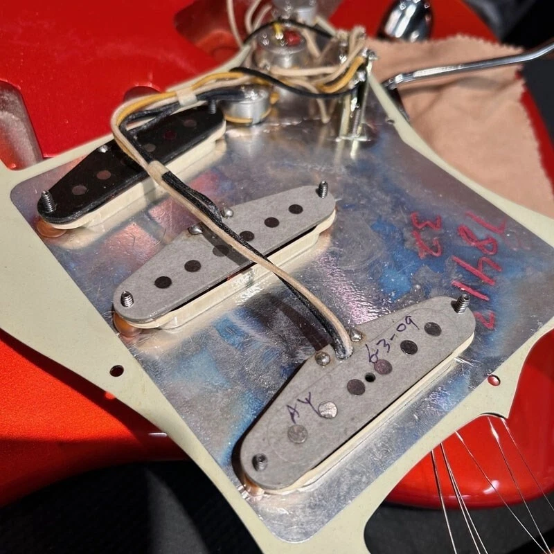 Description Body : Select Alder Body Finish : Thin Nitrocellulose Lacquer Neck : Maple, 1965 C-Shape Neck Finish : Vintage Tinted Nitrocellulose Lacquer Fingerboard : Maple, 9.5" Radius Frets : 22 Frets, Jim Dunlop #6105 Narrow Jumbo Scale : 25.5" (648mm) Tuners : Fender/Schaller Deluxe Cast/Sealed Locking Bridge : New Deluxe 2-Point Synchronized Tremolo with Polished Stainless Saddles and Block Pickups : 2 CS '69-ST (Front/Middle), 1 Texas Special (Bridge) Controls : Volume, Tone 1 (Neck), Tone 2 (Middle/Bridge), 5-Way Lever Switch The guitar is in "player's condition," showing minor dents, scratches, tarnished hardware, rusted screws, and a paint chip at the neck joint. The frets have about 70% of their original height remaining, and there are no issues with the neck condition or electronics. This is a reliable instrument that you can continue to play extensively without worry. Shipping Shipping by FedexorEMS (international express mail service, with Tracking and Insurance, handling cost). Fedex takes 1 week, EMS takes 1-2 weeks. We will ship your item within 5 business days with carefully packed. Returns Money back guarantee within 30 days. We offer 30 days money back guarantee for defective products. The buyer must pay for returning it back to us. When there were defects in a item, please contact us. About Us If you have any problem, please contact us. Your satisfaction is important to us. We have results that I sold of tens of thousands of by Internet sale. We have pride ourselves in the Quality of items we offer. All our items has been checked by technician. As every seller dealing with pre-owned branded items in Japan we have as well license from local government to offer services of this kind. We are officially registered as legal business and we have to comply with all rules and regulations including tax requirements from the Japanese government. International Buyers - Please Note: Import duties, taxes and charges are not included in the item price or shipping charges. These charges are the buyer's responsibility. Please check with your country's customs office to determine what these additional costs will be prior to bidding/buying. These charges are normally collected by the delivering freight (shipping) company or when you pick the item up - do not confuse them for additional shipping charges. We do not mark merchandise values below value or mark items as “gifts” - US and International government regulations prohibit such behavior.