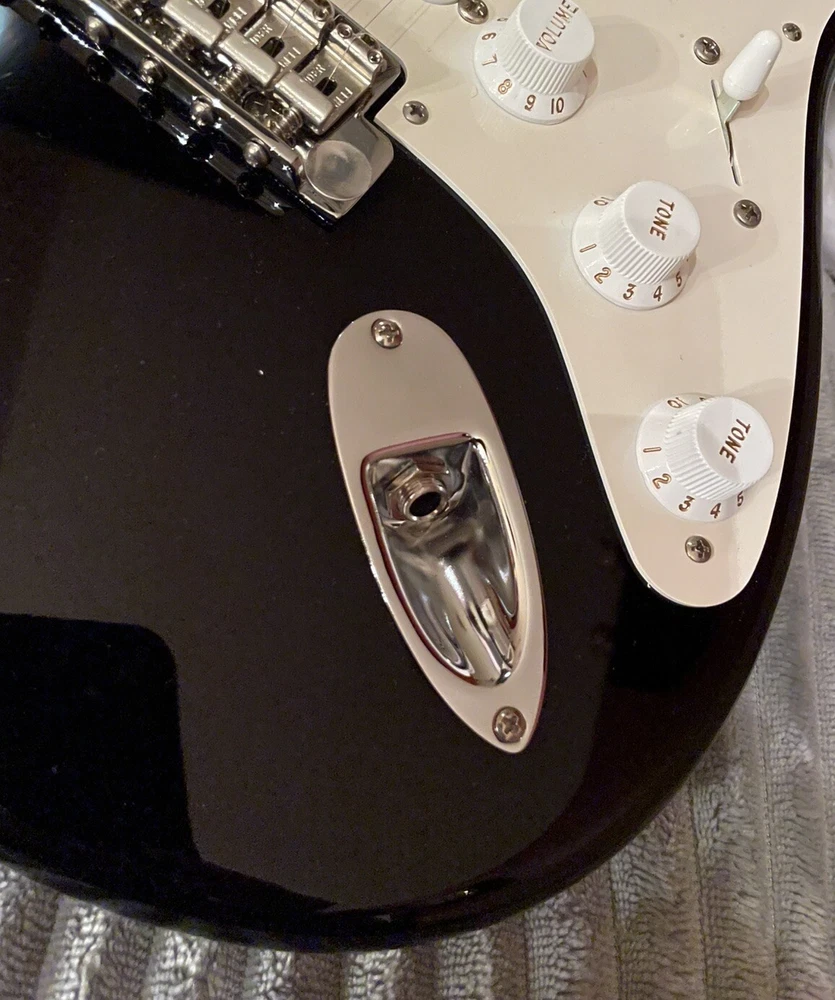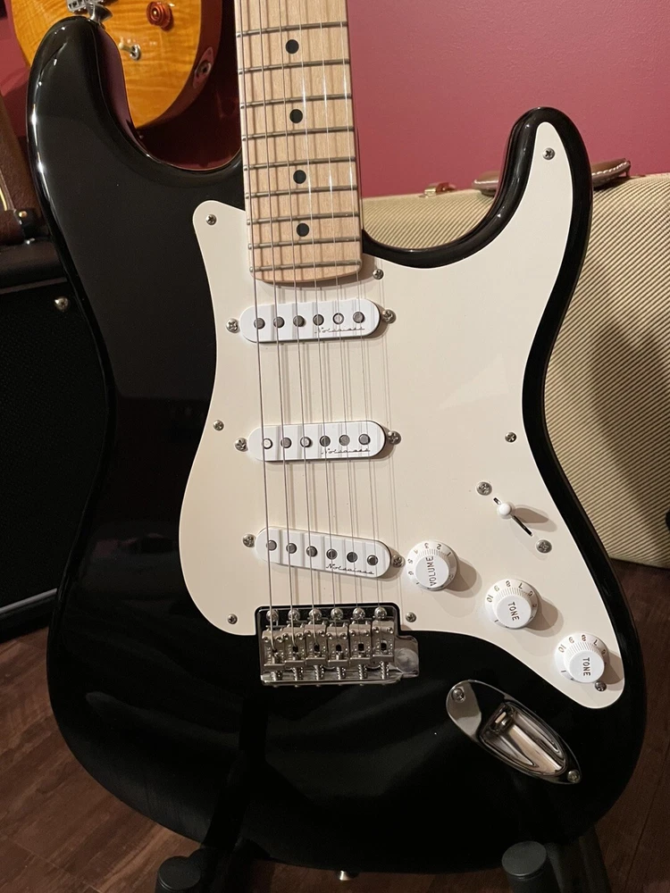 Fender Eric Clapton Strat; purchased new in 2012 and played lightly (just at home) for a couple years; case kept; excellent condition, no “bumps”, couple very faint scratches near cable plug-in (tried to show in photos, but so small you can’t see them). I started focusing on acoustics about 10 years ago, and just never went back to electric. Other than maybe playing for an hour or so every few months, this guitar has stayed in the case. As we’re starting to downsize our housing situation, just need to part with items that’s not being used. Noiseless single-coil pickups, and the current strings are 9’s; If you want to review all the specs in detail, go to the fender site…I’ve made no mods to this great-sounding guitar. Get this awesome instrument from here in the USA….instead of Japan.