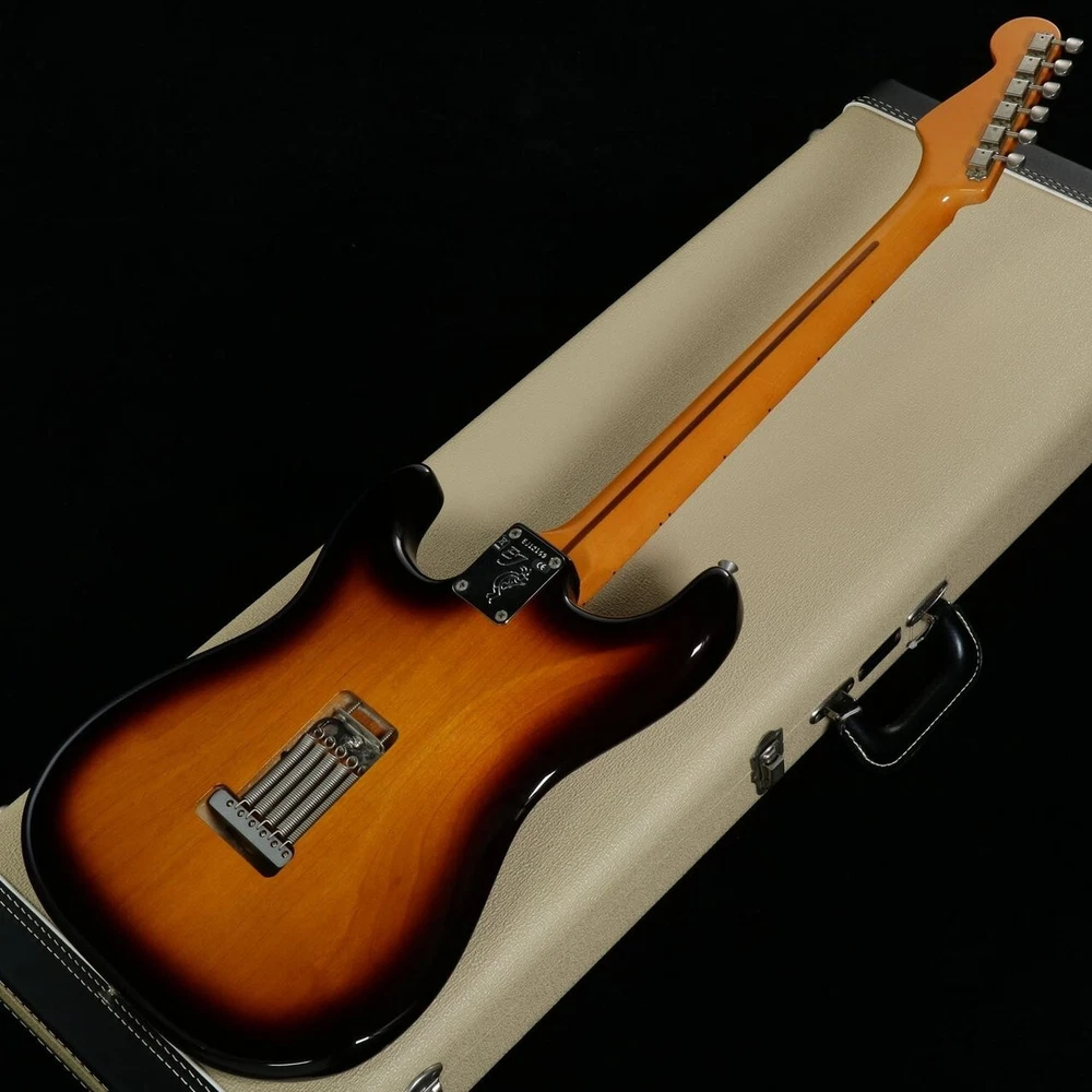 Description This is the Eric Johnson Stratocaster, a signature model from Fender that reproduces Eric Johnson's favorite Stratocaster. It has a two-piece light alder body with deep contours, a one-piece soft V-shaped maple neck with a caramel finish and straight grain, specially voiced Eric Johnson single-coil pickups, front and rear tone controls, staggered pegs that are lower toward the 1st string, no string guide, and an original joint plate. This guitar reflects the attention to detail of Eric Johnson, the tone magician who captivates with beautiful melodies and exquisite sound. Since it does not use a string guide, the strings on the head may resonate depending on the playing style. There are signs of use (paint chips on the joint, scratches, streaks from playing, small scratches, picking marks, bending typical of the 8-point pickguard, cloudiness and bits on metal parts and screws, and other exterior damage). Upon arrival, the guitar was set up (cleaned, strings replaced, rod adjusted, octave adjusted, string height adjusted, frets filed, and nut adjusted), the frets are at a height that will not affect playability, and the truss rod can be adjusted to tighten or loosen and has been confirmed to work up to ±60°. Product rank: B+: Some scratches, but no problem for normal use Serial number: EJ12109 Country of manufacture: USA Case: Hard case Accessories: Arm, bridge cover Weight: 3.34kg Truss rod: [No problem] Rod has been checked up to 60° left and right, no problem Frets remaining: [No problem] Sufficient fret height String height: Low string side: 2.0mm above 12th fret String height: High string side: 1.5mm above 12th fret Nut width: 42.57mm Neck thickness near 1st fret: 22.34mm Neck thickness near 12th fret: 24.65mm Scale: 648mm (25.5") RADIUS: 305mm (12") Strings at setup: ERNIE BALL 2221 / .010-.046 set Repairs and maintenance: Cleaning, string replacement, rod adjustment, octave adjustment, string height adjustment, fret grinding, nut adjustment Product details Shipping Shipping by Fedex or EMS (international express mail service, with Tracking and Insurance, handling cost). Fedex takes 1 week, EMS takes 1-2 weeks. We will ship your item within 5 business days with carefully packed. Returns Money back guarantee within 30 days. We offer 30 days money back guarantee for defective products. The buyer must pay for returning it back to us. When there were defects in a item, please contact us. About Us If you have any problem, please contact us. Your satisfaction is important to us. We have results that I sold of tens of thousands of by Internet sale. We have pride ourselves in the Quality of items we offer. All our items has been checked by technician. As every seller dealing with pre-owned branded items in Japan we have as well license from local government to offer services of this kind. We are officially registered as legal business and we have to comply with all rules and regulations including tax requirements from the Japanese government. International Buyers - Please Note: Import duties, taxes and charges are not included in the item price or shipping charges. These charges are the buyer's responsibility. Please check with your country's customs office to determine what these additional costs will be prior to bidding/buying. These charges are normally collected by the delivering freight (shipping) company or when you pick the item up - do not confuse them for additional shipping charges. We do not mark merchandise values below value or mark items as “gifts” - US and International government regulations prohibit such behavior.
