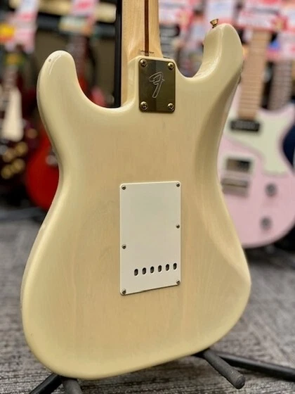 Description Made in Japan Fender guitars have been beloved by players both domestically and internationally for their exceptional craftsmanship and outstanding sound. This particular model is from the Fender Japan lineup and is part of the Signature Series—STR-RK Richie Kotzen, designed in collaboration with the legendary guitarist. Richie Kotzen, known for his work with Mr. Big, The Winery Dogs, and his solo career, has had a significant impact on the music scene, and his signature model reflects his refined taste and technical expertise. The See-Through White Sunburst finish is striking, with subtle hues that reveal the beautiful flame maple grain underneath. The abalone inlays and gold hardware give the guitar a luxurious feel. The neck features a thicker grip akin to traditional Telecasters, making it comfortable for players familiar with a more substantial neck. The fingerboard has a gentle 305R radius, and with 22 frets and super jumbo frets, it offers modern playability. The satin finish on the back of the neck makes it easy to play fast and technical phrases. The guitar is constructed with a maple top, ash back, maple neck, and maple fingerboard, delivering a combination of robust mid-lows and bright, clear highs that create a distinctive tone. For pickups, the guitar is equipped with DiMarzio Custom Made pickups, designed specifically for this model. Condition: There are some light scratches, dents, oxidation, and rust on the hardware due to age and use, as well as some minor chips and cracks in the paint. However, the frets still have plenty of life left, and the truss rod is in good working condition. This guitar is ready to be used as a primary instrument and offers excellent playability for years to come. Year: 2006-2008 Fret life: 80% (leveled and polished) Truss rod: OK Cosmetic damage: scratches, dents, paint chips and cracks, color fading, plating wear Replaced/modified parts: switch [spec] Body : Ash / Flame Maple Laminated Maple Cap Neck : Maple 1pc (Satin Mat) Fingerboard : Maple (305R, 22 Super Jumbo Frets) Pickup : DiMarzio Custom Made x3 Weight : 4.04kg Accessories: original gig bag, arm About Us If you have any problem, please contact us. Your satisfaction is important to us. We have results that I sold of tens of thousands of by Internet sale. We have pride ourselves in the Quality of items we offer. All our items has been checked by technician. As every seller dealing with pre-owned branded items in Japan we have as well license from local government to offer services of this kind. We are officially registered as legal business and we have to comply with all rules and regulations including tax requirements from the Japanese government. International Buyers - Please Note: Import duties, taxes and charges are not included in the item price or shipping charges. These charges are the buyer's responsibility. Please check with your country's customs office to determine what these additional costs will be prior to bidding/buying. These charges are normally collected by the delivering freight (shipping) company or when you pick the item up - do not confuse them for additional shipping charges. We do not mark merchandise values below value or mark items as “gifts” - US and International government regulations prohibit such behavior.