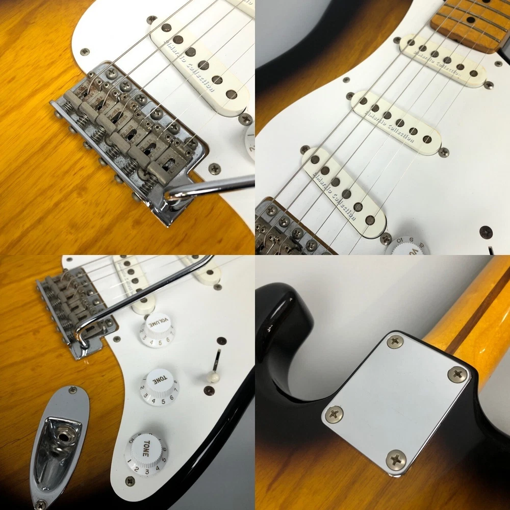 Description Fender Japan ST54-120DMC 2Tone Sunburst 2006-2008 [Equipped with Dimarzio Classical Vintage pickups] A 54 model with a lacquer topcoat body made of two pieces of ash and equipped with Dimarzio Collection Classical Vintage pickups. Replaced with CTS pots and Switchcraft jacks. A crisp, attacking tone, with a clear, thick vintage sound. A rare guitar with few copies in circulation on the market. [54 model Stratocaster] The body is made of two pieces of ash, the neck is made of maple, and the fingerboard is made of maple. It has a 21 fret scale of approximately 648 mm, a neck width of approximately 42 mm, and a bolt-on neck specification. It has 54 specifications such as a round string guide, V-neck shape, and one-ply pickguard. The body is painted with a lacquer topcoat. There is lacquer burning and paint peeling. The strap pin has been replaced with a locking type. The knobs have also been replaced. [Equipped with Dimarzio Collection Classical Vintage DSC-1] Equipped with Dimarzio Collection Classical Vintage DSC-1 pickups. Controls 1Vol, 2Tone, 5Way pickup select switch. Replaced with CTS pots and Switchcraft jack. A crisp, attacking tone, clear and thick vintage sound. [Product condition] The condition is that the neck is almost straight. There are scratches from use and dullness of the metal parts due to aging. There is a crack in the paint on the back of the neck. There is lacquer burning and peeling of the paint. The strap pin has been replaced with a locking type. The knob has been replaced. The CTS pots and Switchcraft jack have been replaced. There are no problems with the operation or sound. The strings are .009-.042 gauge and adjusted. There is enough room in the rod to adjust the neck in both the tightening and loosening directions. The neck has been adjusted to be almost flat. The string height at the 12th fret is 1.7mm for the 1st string and 1.8mm for the 6th string. Included accessories are a genuine soft case, arm, and strap lock pin socket. [SPEC] Body material: Ash Neck material: Maple Neck shape: V Neck warp: None Fingerboard material: Maple (21F) String height: 12F Treble-bass: 1.7mm-1.8mm Fret remaining: 60% Inlay: Dot Nut (width): Approx. 42mm Pegs: Original Scale: Approx. 648mm Bridge: STEEL BLOCK S8F VINTAGE String gauge: .009-.042 Pickguard: White 1P Pickup: Dimarzio Collection Classical Vintage DSC-1 Switch: 5-way pickup select switch Control: 1Vol, 2Tone Rod remaining: There is room to loosen both Weight: Approx. 3.66kg Accessories: Genuine soft case Shipping Shipping by Fedex or EMS (international express mail service, with Tracking and Insurance, handling cost). Fedex takes 1 week, EMS takes 1-2 weeks. We will ship your item within 5 business days with carefully packed. Returns Money back guarantee within 30 days. We offer 30 days money back guarantee for defective products. The buyer must pay for returning it back to us. When there were defects in a item, please contact us. About Us If you have any problem, please contact us. Your satisfaction is important to us. We have results that I sold of tens of thousands of by Internet sale. We have pride ourselves in the Quality of items we offer. All our items has been checked by technician. As every seller dealing with pre-owned branded items in Japan we have as well license from local government to offer services of this kind. We are officially registered as legal business and we have to comply with all rules and regulations including tax requirements from the Japanese government. International Buyers - Please Note: Import duties, taxes and charges are not included in the item price or shipping charges. These charges are the buyer's responsibility. Please check with your country's customs office to determine what these additional costs will be prior to bidding/buying. These charges are normally collected by the delivering freight (shipping) company or when you pick the item up - do not confuse them for additional shipping charges. We do not mark merchandise values below value or mark items as “gifts” - US and International government regulations prohibit such behavior.