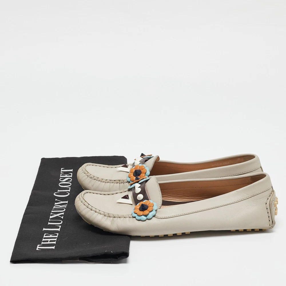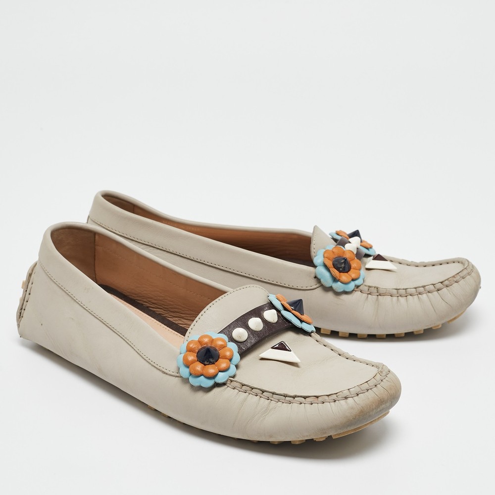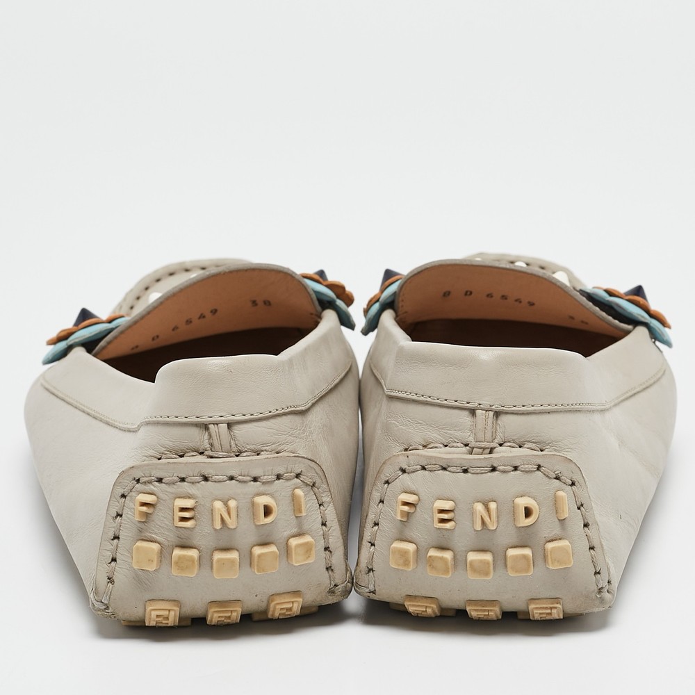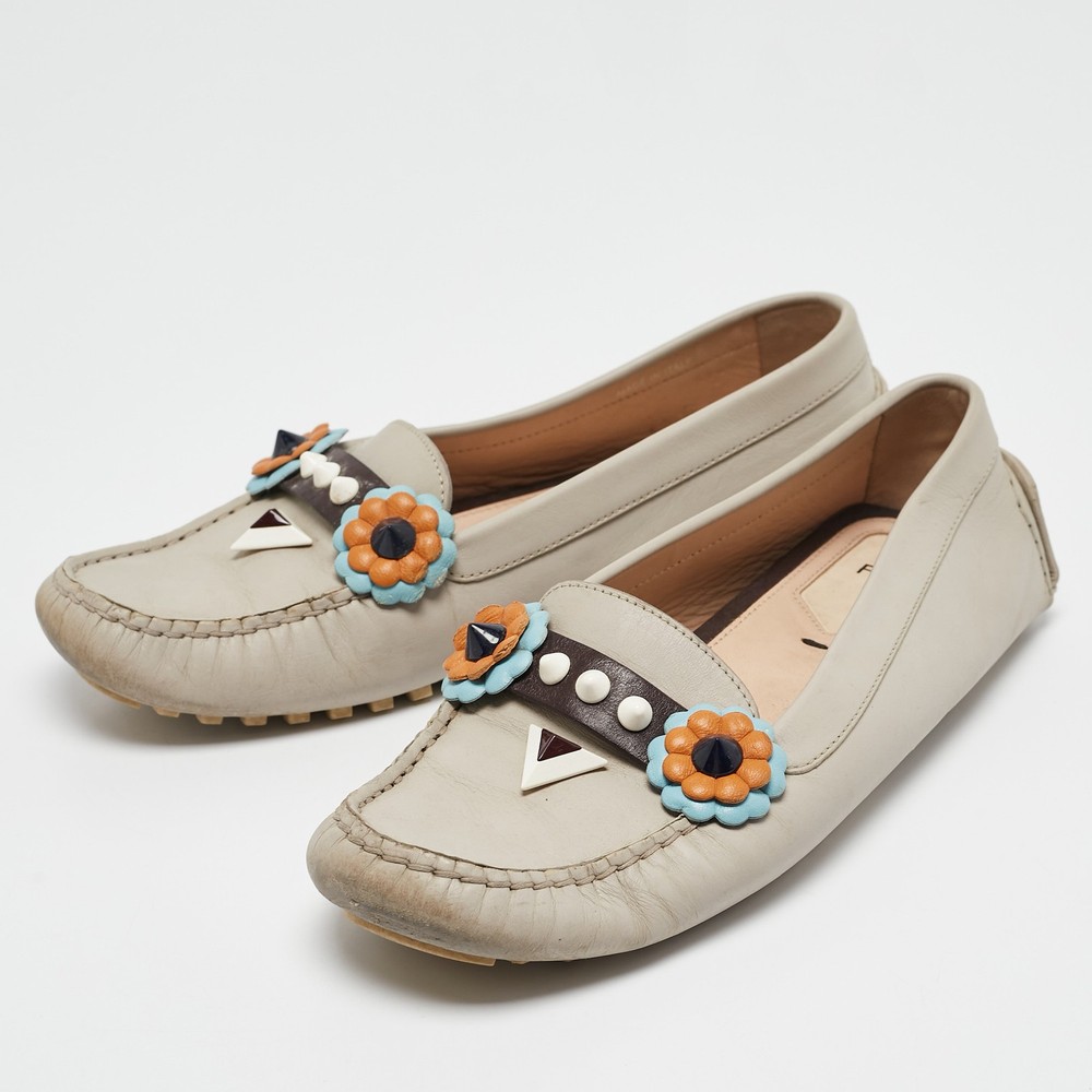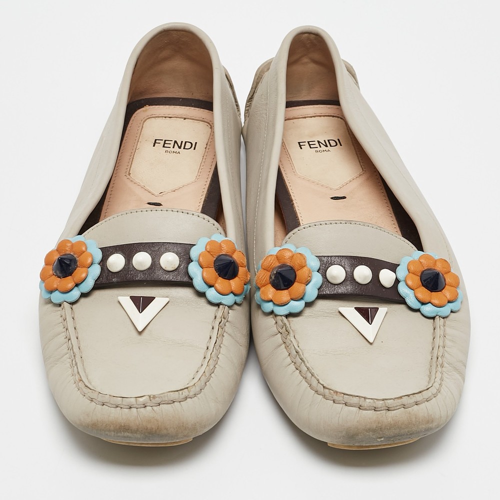 Practical, fashionable, and durable—these designer loafers are carefully built to be fine companions to your everyday style. They come made using the best materials to be a prized buy.Certified by The Luxury Closet - This item has gone through a detailed authentication process overseen by our experts. We offer a lifetime guarantee of authenticity on all our items. Import duties, taxes and charges are not included in the item price. These charges are the buyers responsibility. Please check with your country’s customs office to determine what these additional cost will be prior to buying. Our eBay Store About Us Contact Us Add to Favorite Sellers Fendi Grey Leather Studded Flowerland Loafers Size 38 $158.4 Practical, fashionable, and durable—these designer loafers are carefully built to be fine companions to your everyday style. They come made using the best materials to be a prized buy. Product Details Brand Color Grey Dimensions Material Leather Size 38 Outsole Width 9 cm Outsole Length 26.5 cm Heel Height Includes The Luxury Closet Packaging Certified by The Luxury Closet This item has gone through a detailed authentication process overseen by our experts. We offer a lifetime guarantee of authenticity on all our items. How We Check The in-house team of experts at The Luxury Closet is highly trained to verify the authenticity and the condition of the luxury products. They ensure that only 100% authentic items are put on sale.The evaluation process is unique with its own mix of assessment criteria and differs according to the category. Each item is evaluated based on the following combination of hallmarks, hardware, stitching, symmetry, material, craftsmanship, stamping, codes, hologram stickers, and packaging. Our authenticators also check if the items have been modified or amended (e.g., aftermarket diamonds, replaced batteries, repaired bags, etc.) International Buyers Import duties, taxes and charges are not included in the item price. These charges are the buyers responsibility. Please check with your country’s customs office to determine what these additional cost will be prior to buying.