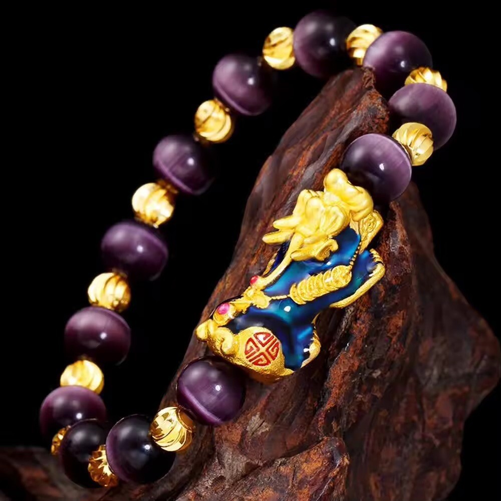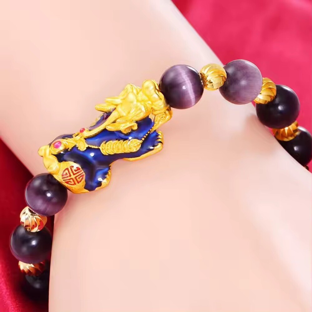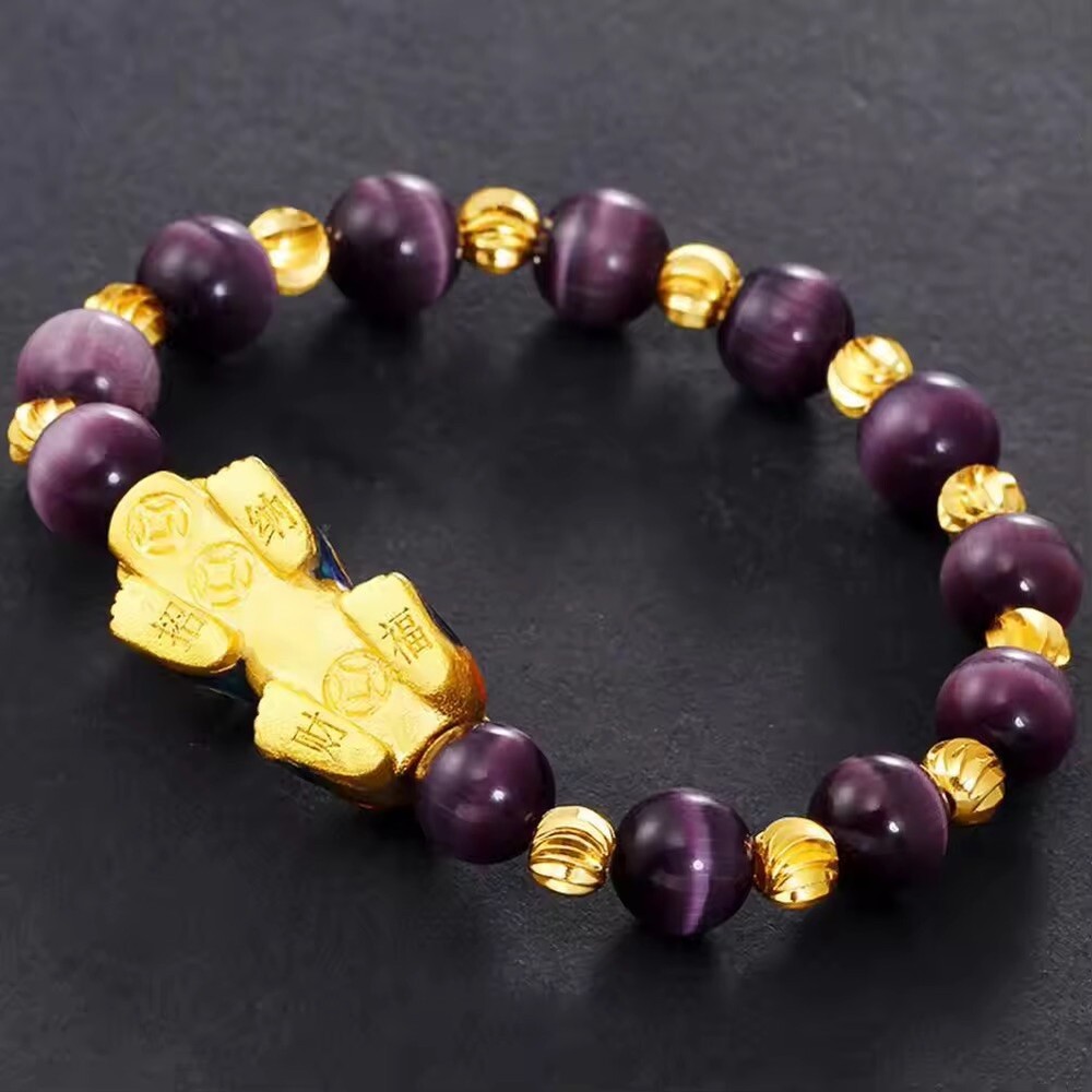 Feng Shui Amethyst PiXiu Bracelet for Wealth Luck Jewelry Gift