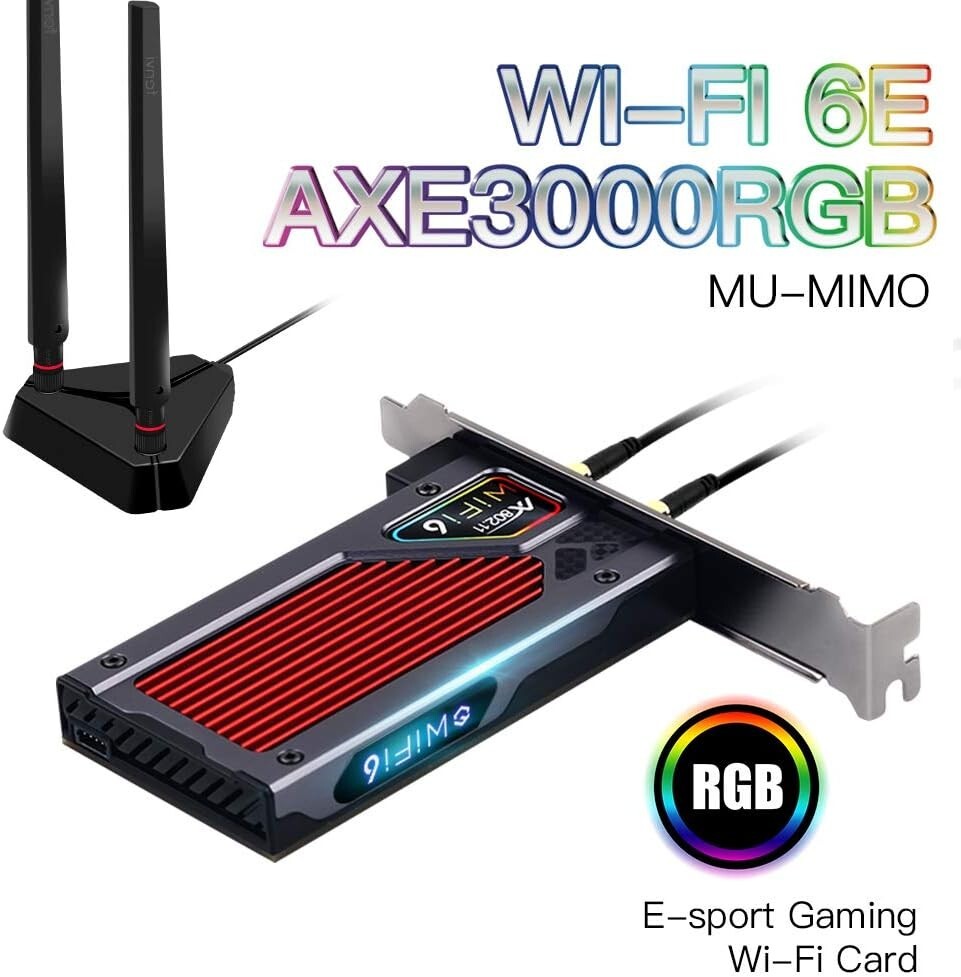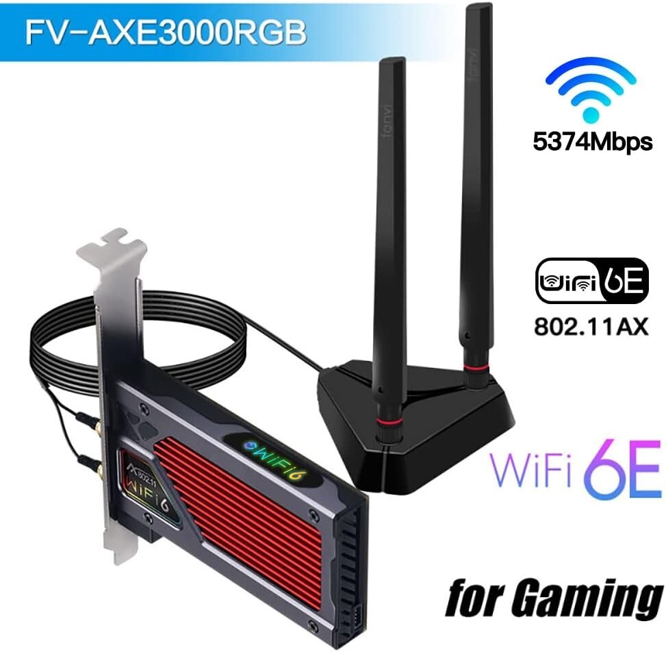 fenvi AX210 WiFi 6E PCI-E WiFi Adapter RGB Gaming ac 160MHz 5GHz 6GHz Tri-Band 5400Mbps AX210NGW Desktop WiFi Card for PC WindowsOnly WiFi 6E Router Antennas Support 6Ghz Band The fenvi Wi-Fi 6E AX210 Desktop adapter card that support via 2x2 MU-MIMO antennas over the , 5GHz and 6GHz bands for PC motherboards in the PCI-E/x1/x4/x8/x16 form-factors,also Windows10,64 bit and Google Chrome OS, also for enabled in the Linux you have any existing Wifi or Bluetooth drivers,it may cause error in the device or the installed card may not operate. driver:https:// This Wi-Fi 6E networking card for gaming fans pc desktop has the sixth generation of the Wi-Fi standard,such as Orthogonal Frequency-Division Multiple Access (OFDMA), up Multi-User MIMO (MU-MIMO), and higher-order coding 1,024-QAM. 4x Longer OFDM Symbol Make Latency A Thing of The Past The Wi-Fi 6 standard uses OFDMA for increased efficiency lag-free performance.Imagine your WiFi connection as a series of delivery trucks delivering data packets to your devices. WiFi 6E AX210 adapter support legacy Wi-Fi 4, 5, 6 and Wi-Fi 6E and designed for Wi-Fi 6 wave 2 features. By implementing the new Wi-Fi 6E technology supporting the new 6GHz band that includes 1200MHz of new contiguous spectrum (>2x compared to 5GHz) with more Gigabit Wi-Fi options and exclusivity to Wi-Fi 6 products, AX210 maximizes Wi-Fi 6E and Gigabit WiFi benefits enabling greater network flexibility, faster downloads, sharing and backups as well as reduced latency and improved reliability. With WiFi 6 and 6E on 80hz, you will get 1200Mbps and 160Hz 2400Mbps on a client with 2×2 TX/RX streams. you have to use the 160Hz channel width if you want to exceed the gigabit throughput offered by most wired solutions. on the relatively congested 5Ghz channel, only have six 80MHz and two 160MHz 6Ghz, you access to fourteen-80Mhz channels and seven 160Mhz channels, making it easily possible to run a mesh system or access points with no overlapping channels on the 160Mhz width. New Function Equipped with technology. Support connecting with Bluetooth headset, Bluetooth stereo, Bluetooth keyboard, Bluetooth mouse and others for more conveniences and demands. Efficient WiFi Emission Insert it in a desktop computer to build wireless WIFI signals. Mobile s, desktops, tablet, PCs are able to connected. also double data rates speed for faster transmissions thereby reducing the overall power consumption. ax200 wifi 6 card ax210ngw wifi 6e card MacOS Airport Continuity & Handoff ax200ngw wifi 6 FV- wifi 6e Add to Cart Add to Cart Add to Cart Add to Cart Add to Cart Customer Reviews out of 5 stars 570 out of 5 stars 760 out of 5 stars 641 out of 5 stars 1,018 out of 5 stars 710 Price $$ $$ $$ $$ $$ ✓ ✓ ✓ ✓ ✓ Combined Speed 2400Mbps+576Mbps 6GHz 3000Mbps 5GHz 2400Mbps + 300Mbps 1300Mbps + 450Mbps 2400Mbps+576Mbps 6GHz 3000Mbps 5GHz 2400Mbps + 300Mbps Wi-Fi Standards a/b/g/n/ac/ax wifi 6e a/b/g/n/ac a/b/g/n/ac/ax wifi 6e Orthogonal Frequency-Division Multiple Access (OFDMA) ✓ ✓ ✓ ✓ Multi-User MIMO (MU-MIMO) ✓ ✓ ✓ ✓ higher-order coding 1,024-QAM ✓ ✓ ✓ ✓ Bands GHz, 5 GHz (160 MHz) Tri-Band (6GHhz + 5Ghz + GHz, 5 GHz GHz, 5 GHz (160 MHz) Tri-Band (6GHhz + 5Ghz + Channel Width 160/80/40/20Mhz 160/80/40/20Mhz 160/80/40/20Mhz 160/80/40/20Mhz 160/80/40/20Mhz