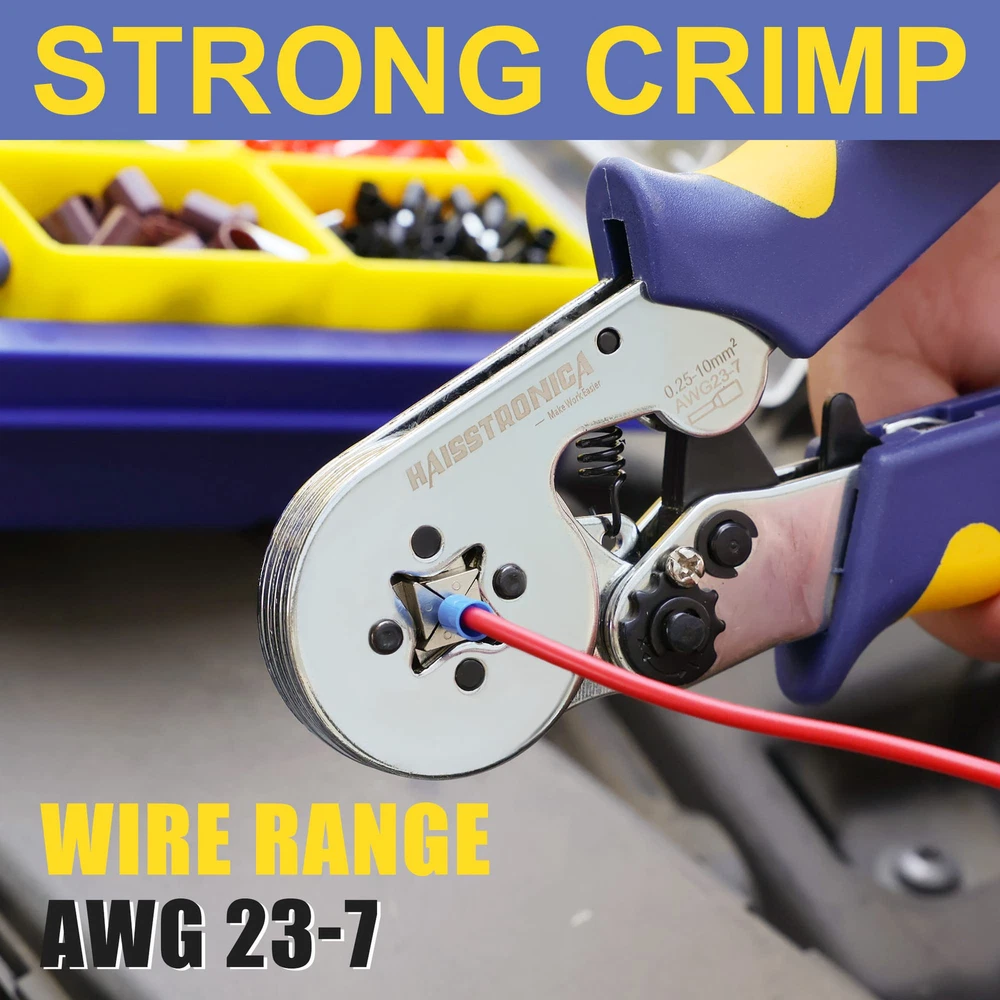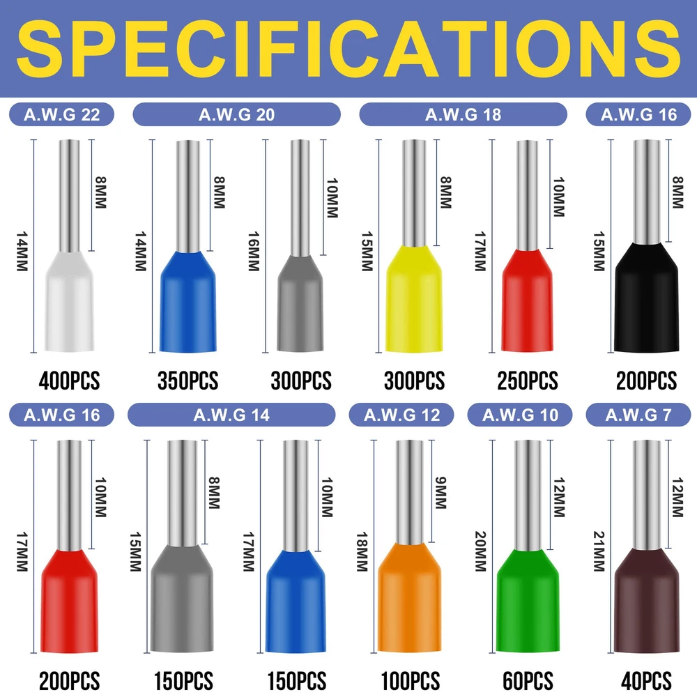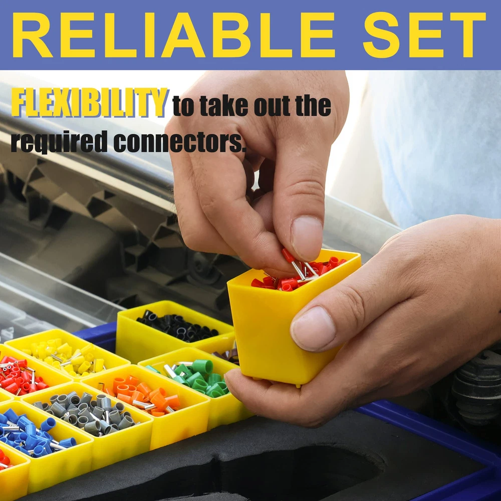 Ferrule Crimping Tool Kit: Kit includes a wire crimping tool, wire stripping pliers, and 2500 pcs wire ferrule terminals.Everything you need for efficient and professional wire crimping is conveniently carried in one toolbox Versatile: Available in 12 terminal sizes (AWG 22-7) made from high quality tinned copper ferrules, this ferrule crimping tool kit ensures secure and reliable connections every time Electrician's tools: A-Ferrules crimping pliers tool crimping range AWG23-7 with ratchet adjustment structure B-Precision strippers can cut and strip AWG20-10 wire Durable Box: Made from high quality materials, this ferrule crimping tool kit is built to last. The sturdy construction ensures durability in demanding applications, making it a reliable choice for professionals and DIY enthusiasts Perfect Gift for Professionals: Whether you're a professional electrician or a DIY enthusiast, this ferrule crimping tool kit is a must-have addition to your toolbox