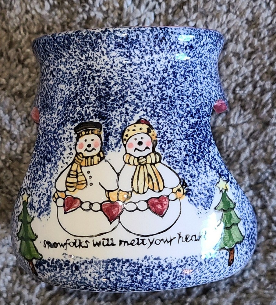 This is a 5-inch tall porcelain and ceramic candle holder suitable for tea lights. It is designed with a holiday theme, specifically for Christmas, and comes in white color. The product is made in China and perfect for adding a cozy touch to your home during the winter season. Looks new.