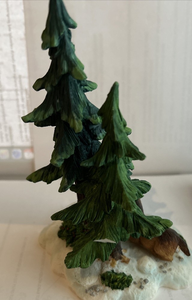 Crafted by H & H, this Christmas village accessory is a must-have for collectors and holiday enthusiasts alike. The intricate details of the deer design and the sturdy construction of the tree make this a durable and long-lasting addition to your holiday decor. Whether you're creating a unique village scene or simply adding a touch of nature to your home, this Christmas village accessory is sure to delight. There is a chip on the back of the tree as shown in last picture.