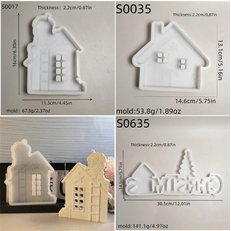 Features: Christmas themed silicone molds featured house shaped, "CHRISTMAS" word designed, very sutiable for crafting decoration, home decoration, Christmas holiday decoration, epoxy resin project. Crafted from silicone. Soft and flexible, good durability, easy to use. Dishwashers, oven and fridges safe, not easy deformed. Work great as silicone holders mould, silicone mould, epoxy resin mould, silicones concrete cement molds. Use these Christmas house shaped silicone molds to make decoration, home decoration, resin craft. Could be used with concrete, cement, gypsum, clay, epoxy resin. You could add various embellishments, such as essential oil, dry flower, sequins, rope, resin color and other crafting supply you like. Great for crafting tealight stand decoration, gypsum decorations, Christmas present, Christmas decorations, table decoration, birthday present, New Year present. Specifications: Color: White Component: Silicone S0017 Mould Size: Approximately. 11.3x16cm/4.45x6.3in S0035 Mould Size: Approximately. 14.6x13.1cm/5.75x5.16in S0635 Mould Size: Approximately. 30.5x14.50cm/12.01x5.7in Weight: Approximately. 200grams Package Includes: 1Piece Christmas Themed Resin Silicone Mould note: 1.Please allow 0-1cm error due to manual measurement. Make sure you donot mind before bid. 2.Due to difference between different monitors, the picture may not reflect the actual color