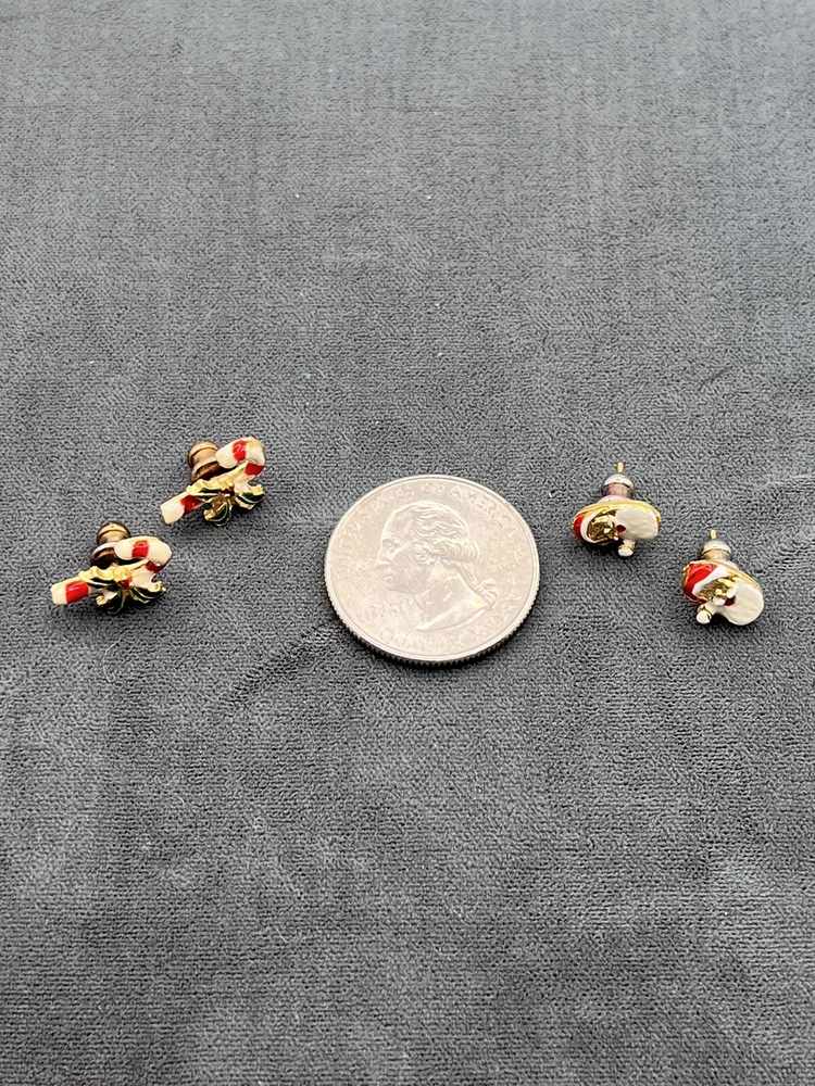Get festive this holiday season with these adorable Christmas earrings. This set includes two pairs of earrings, one featuring Santa and the other candy canes. The earrings are pierced and perfect for any Christmas occasion. The stud style adds a classic touch to any outfit. Add these earrings to your jewelry collection or give them as a gift to a loved one. Spread Christmas cheer with these fun and festive earrings!