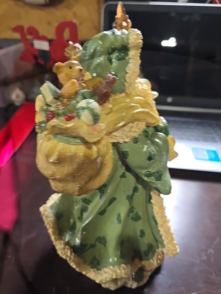 This Santa Figurine is a late 20th-century Christmas decoration made of multicolor resin. Standing at 10.5 inches tall and measuring 6 inches in both length and width, this original piece features a jolly Santa Claus design. The figurine captures the festive spirit of the holiday season and would make a charming addition to any holiday or seasonal decor collection.
