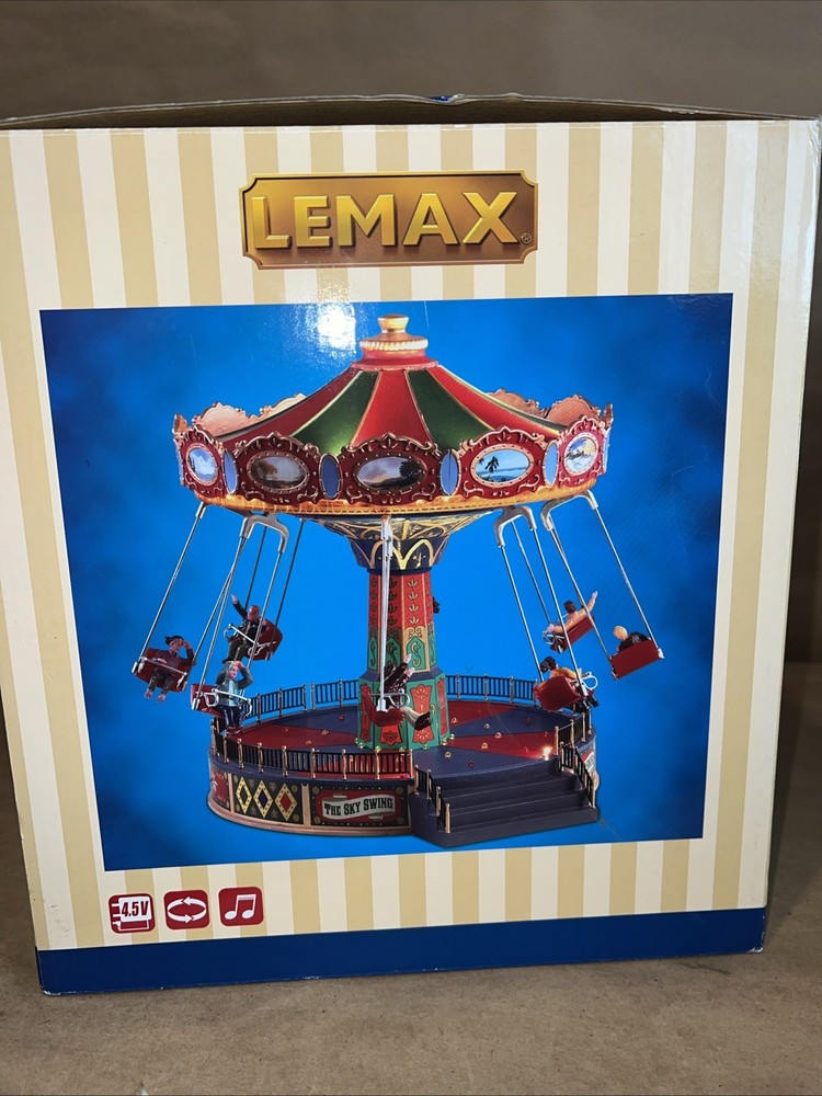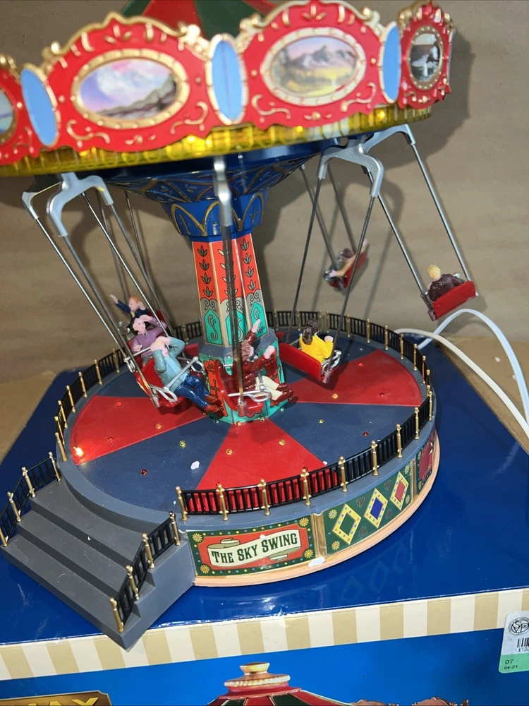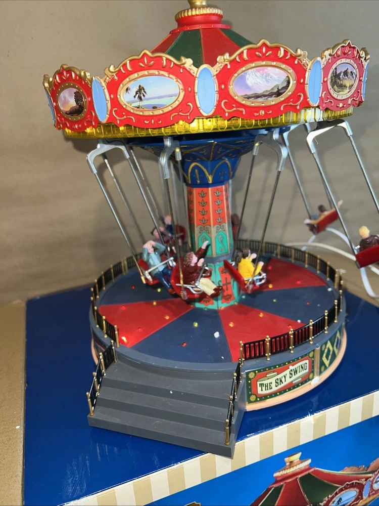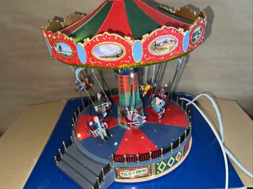 The Christmas Sky Swing with Multicolor Lights and Motion is a medium-sized, animated Lemax building perfect for all seasons. This Art Deco style tabletop piece features a rectangle shape and is made of polyresin. It includes special features such as animated motion and volume control, making it suitable for any room during the festive season. The colorful accents and unique design make it a perfect addition to holiday and seasonal decor collections.