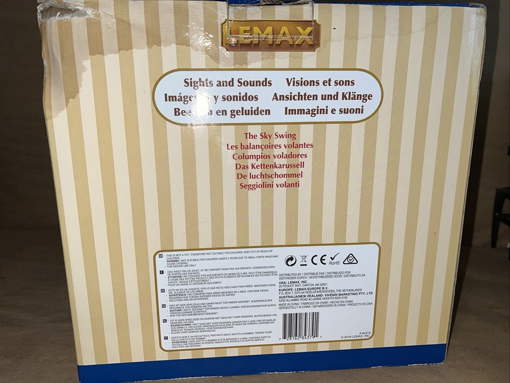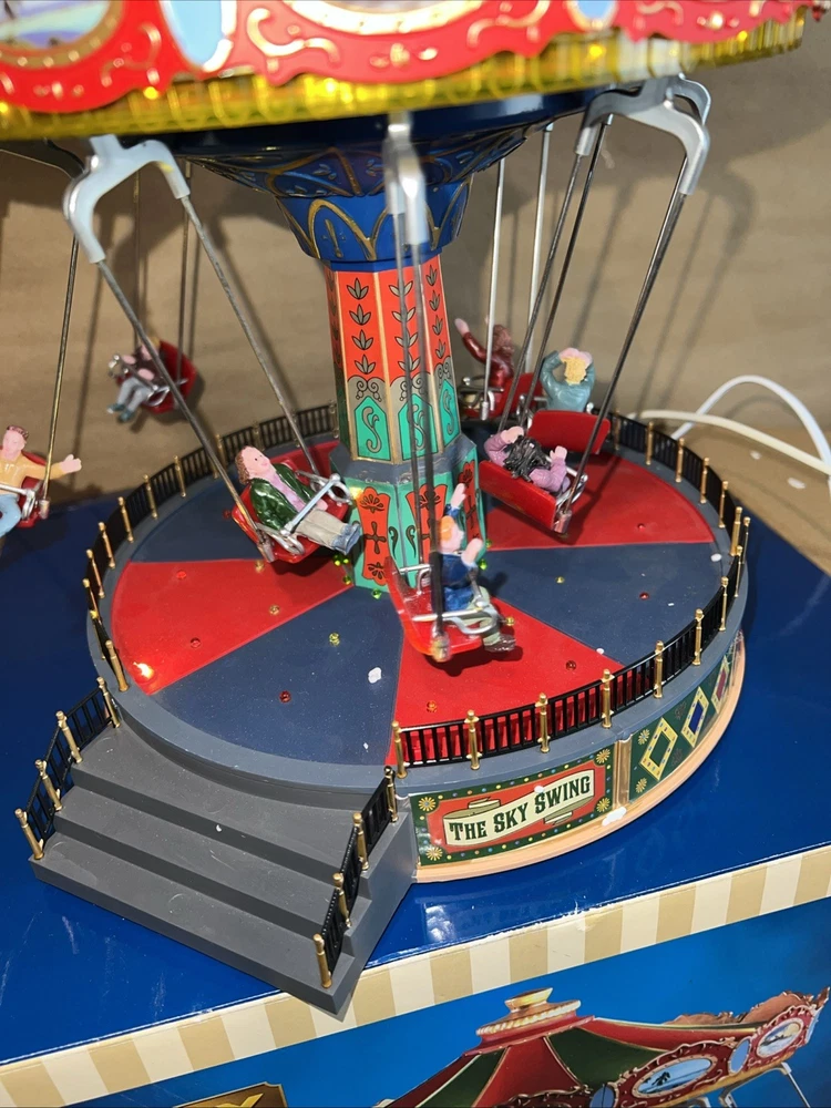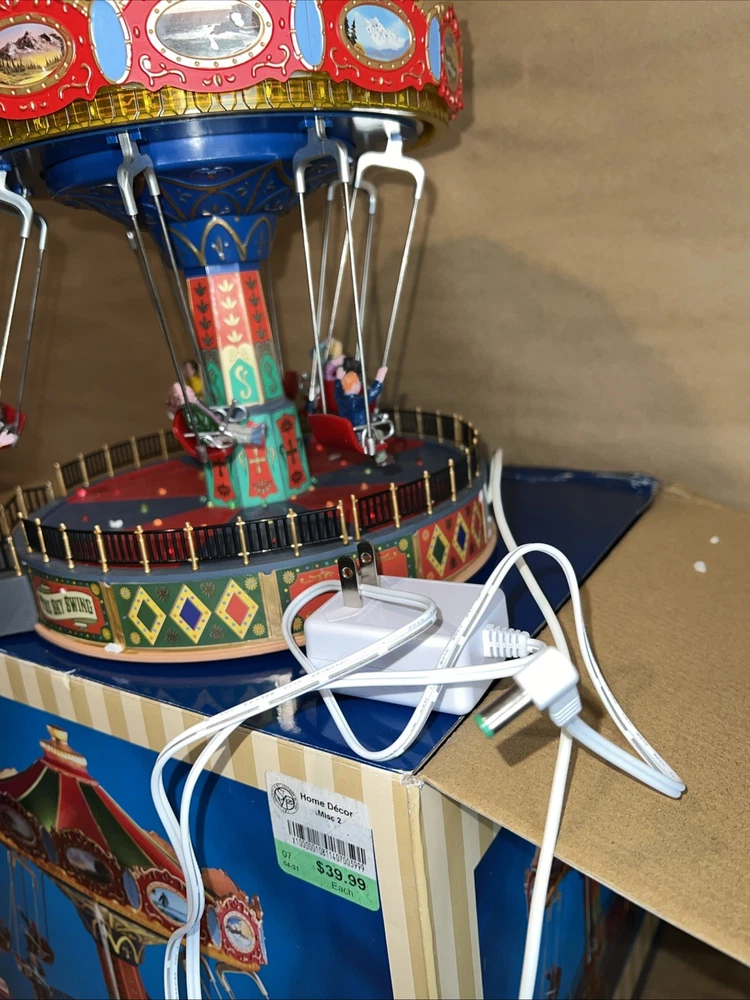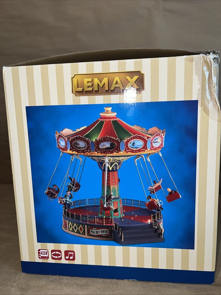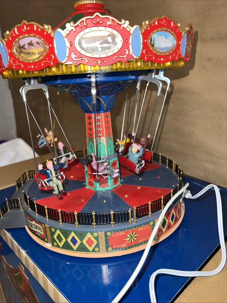 The Christmas Sky Swing with Multicolor Lights and Motion is a medium-sized, animated Lemax building perfect for all seasons. This Art Deco style tabletop piece features a rectangle shape and is made of polyresin. It includes special features such as animated motion and volume control, making it suitable for any room during the festive season. The colorful accents and unique design make it a perfect addition to holiday and seasonal decor collections.