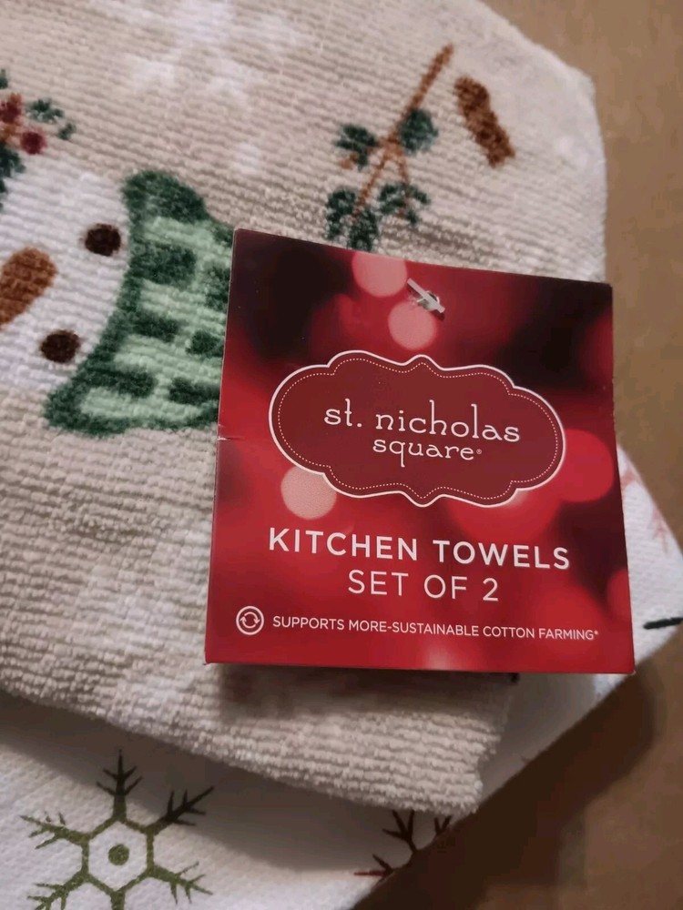 *NEW* St Nicholas Square Christmas Kitchen Towels Set 2-pk Holiday Snowman LET IT SNOW
