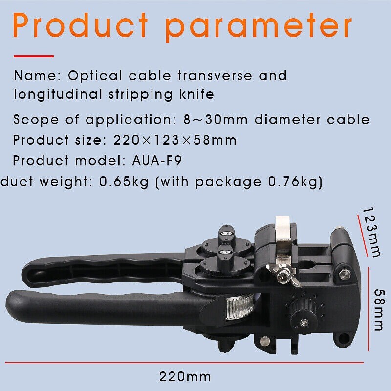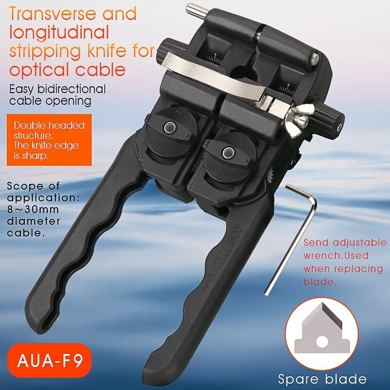 Item specifics Condition New: A brand-new, unused, unopened, undamaged item in its original packaging (where packaging is applicable). Packaging should be the same as what is found in a retail store, unless the item is handmade or was packaged by the manufacturer in non-retail packaging, such as an unprinted box or plastic bag. See the seller's listing for full details. See all condition definitionsopens in a new window or tab Brand Unbranded Type Crimping Tool Size 8 in Custom Bundle No Model AUA-F9 Material Metal, Stainless Steel, Steel MPN Does not apply Country/Region of Manufacture China weight 700g Item description from the seller Longitudinal Cable Jacket Slitter Sheath Op ening Cutter Fiber Optic Stripper