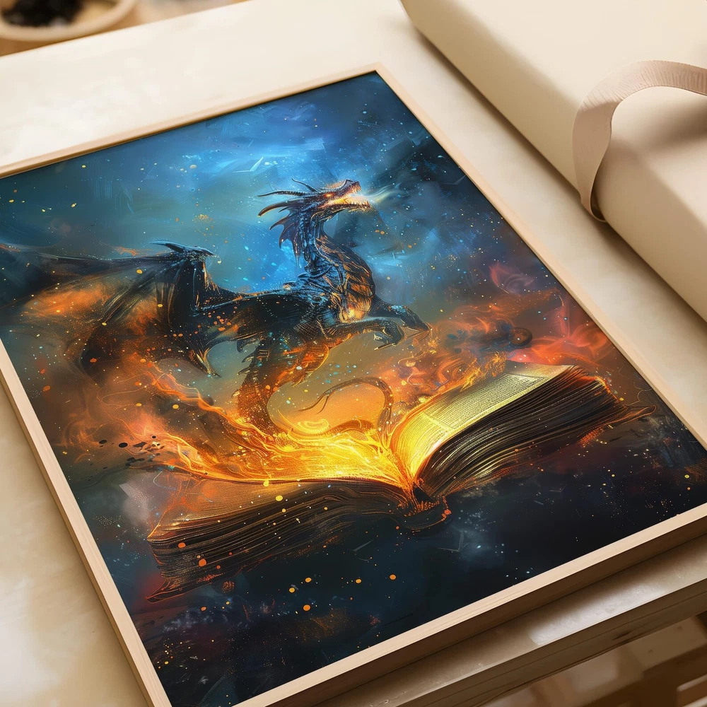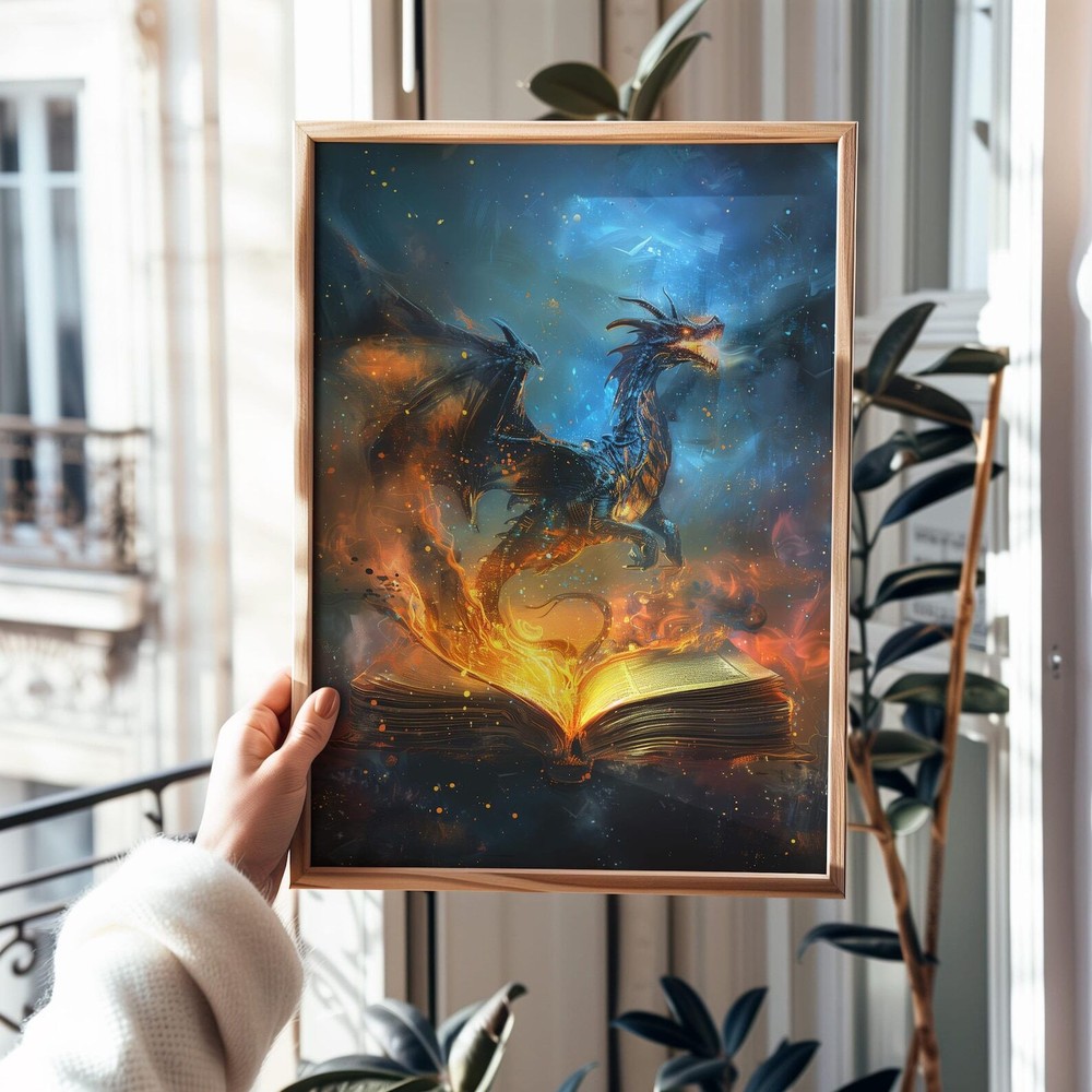 Fiery Dragon Fantasy Art Print Magical Book Lover's Decor Enchanting Wall Art Material: Premium luster photo paper Print type: Inkjet printing One side printed + The finish provides the highest possible resolution and color saturation + Lasts up to 200 years in color and 400 years in black-and-white + Printed on high-quality resin-coated photo base paper medium + Posters can be hung with double-sided tape, tacks, or framed + Hand washing with a gentle cry cloth is recommended for extended durability I will hand select the best choice of paper for your chosen design to ensure top quality results for a beautiful, bright and luxurious print. All prints are sealed in cellophane slips for protection during transportation, and are shipped in a protective cardboard envelope.