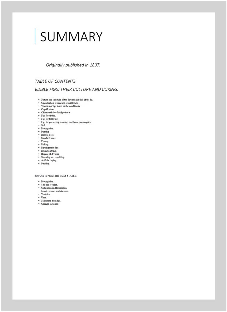 Fig Culture : Edible Figs; Their Culture and Curing. Fig Culture in the Gulf Stat, Paperback by Eisen, Gustav; Earle, Franklin Sumner, ISBN 1539534391, ISBN-13 9781539534396, Brand New, Free shipping in the US Originally published in 1897. TABLE OF CONTENTS EDIBLE FIGS: THEIR CULTURE AND CURING. Nature and structure of the flowers and fruit of the fig. Classification of varieties of edible figs. Varieties of figs found useful in california. Caprification. Climate suitable for fig culture. Figs for drying. Figs for table use. Figs for preserving, canning, and home consumption. Soil. Propagation. Planting. Double trees. Standard trees. Pruning. Picking. Dipping fresh figs. Drying on trays. Degree of dryness. Sweating and equalizing. Artificial drying. Packing. FIG CULTURE IN THE GULF STATES. Propagation. Soil and location. Cultivation and fertilization. Insect enemies and diseases. Varieties. Uses. Marketing fresh figs. Canning factories.